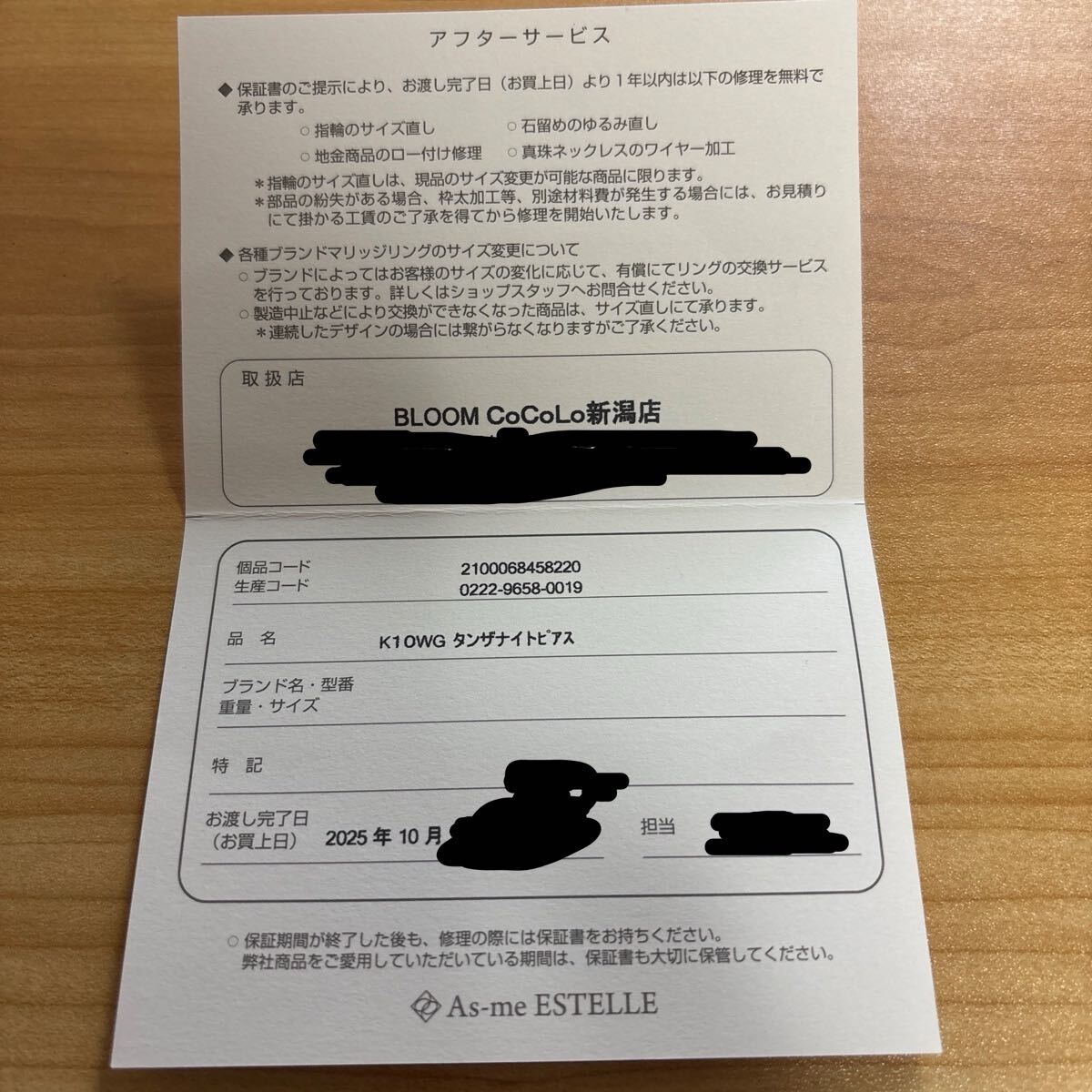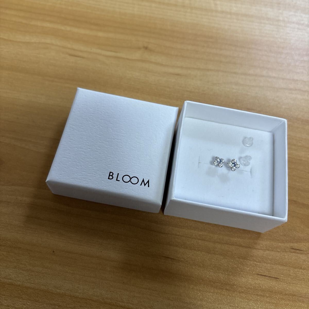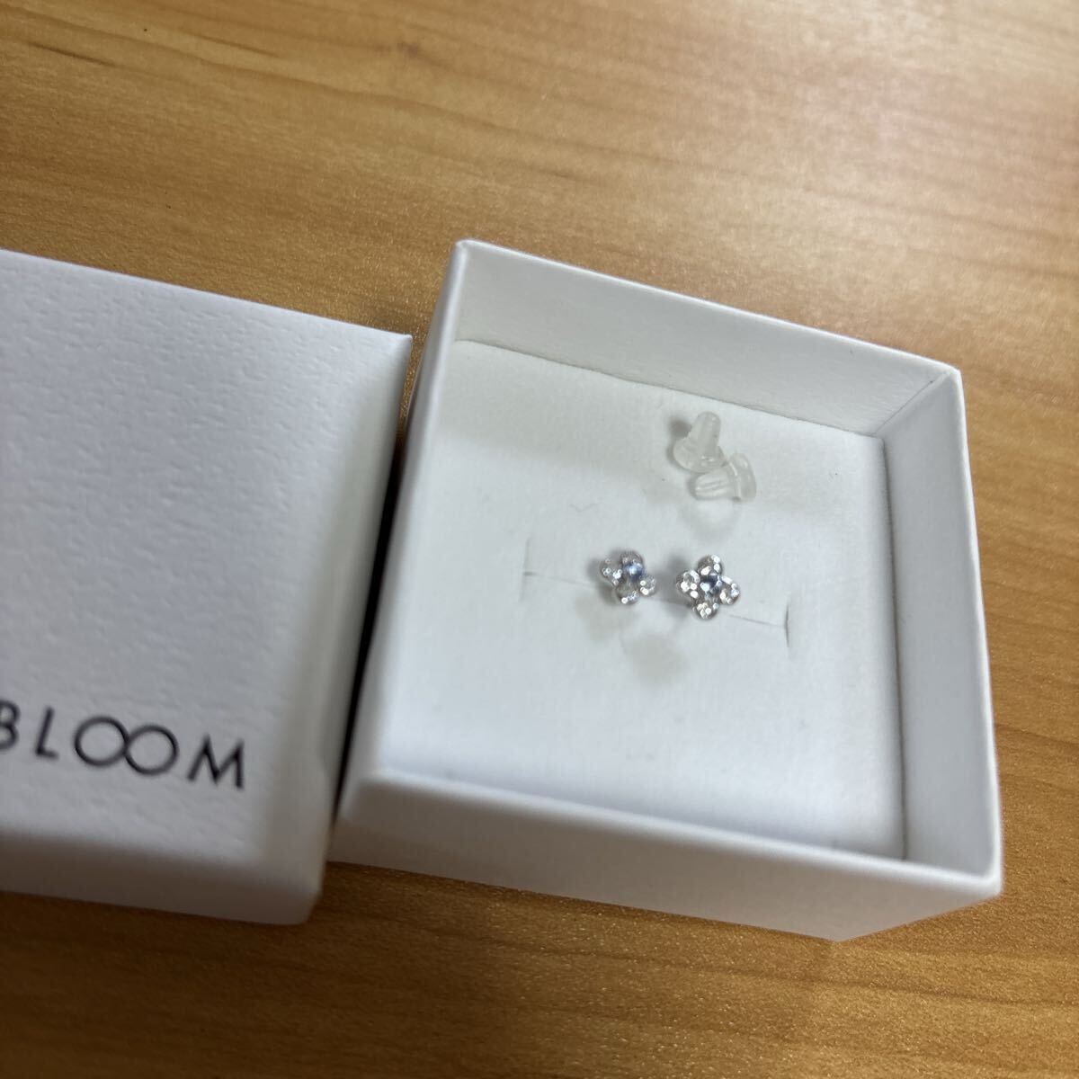 お花型のピアスです。中心の青い石がタンザナイト、4つの白い花びらがキュービックジルコニアになります。