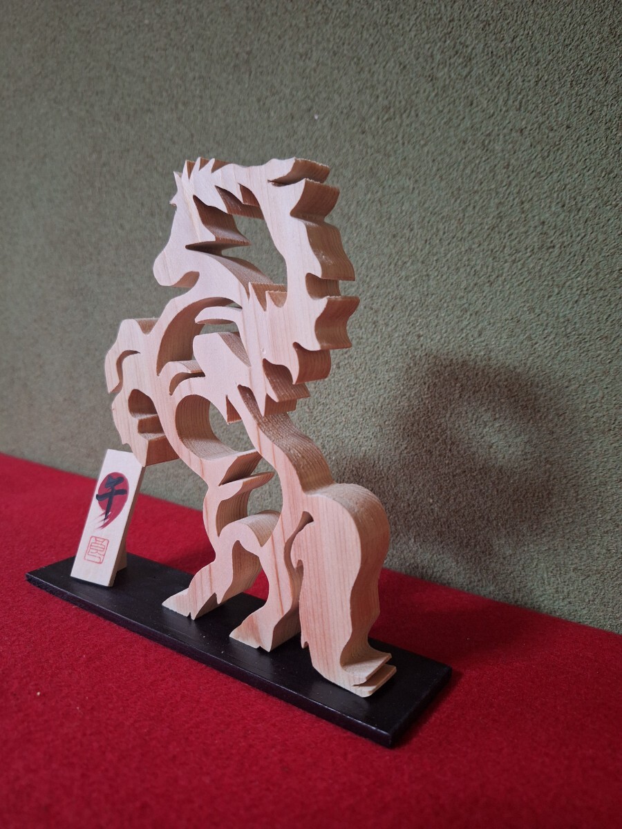 国産の素材を生かして、木の温もりを感じるシンプルな作品です。木の独自の香りを楽しむ糸鋸木工作品です。