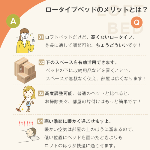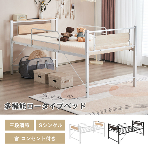 【ホワイト】ロータイプベット 宮棚 ベッド シングル ロング 高さ調節 3段階 パイプ ベット  スチール ベッド下 収納付きフレー KU220