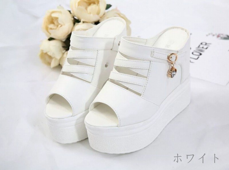 【高品質】全2色 ビーチサンダル ミュール 厚底 ウエッジ 無地 シンプル 35 ホワイト