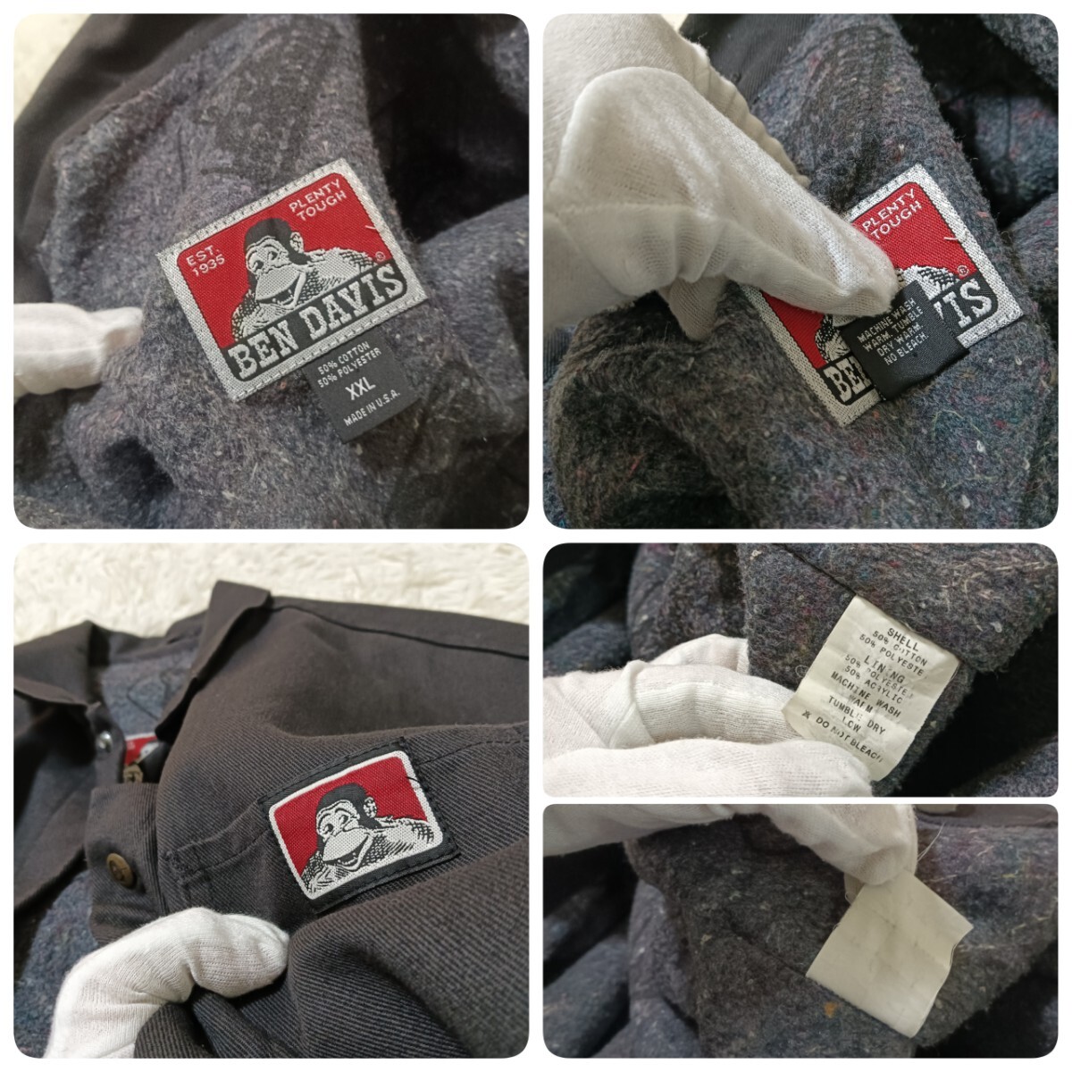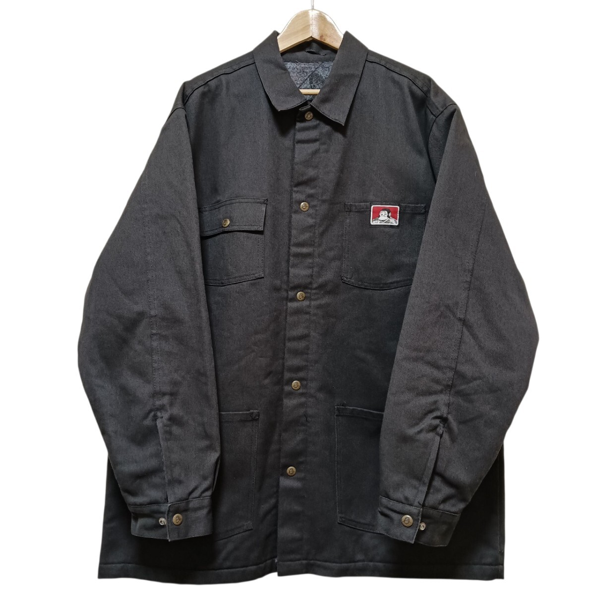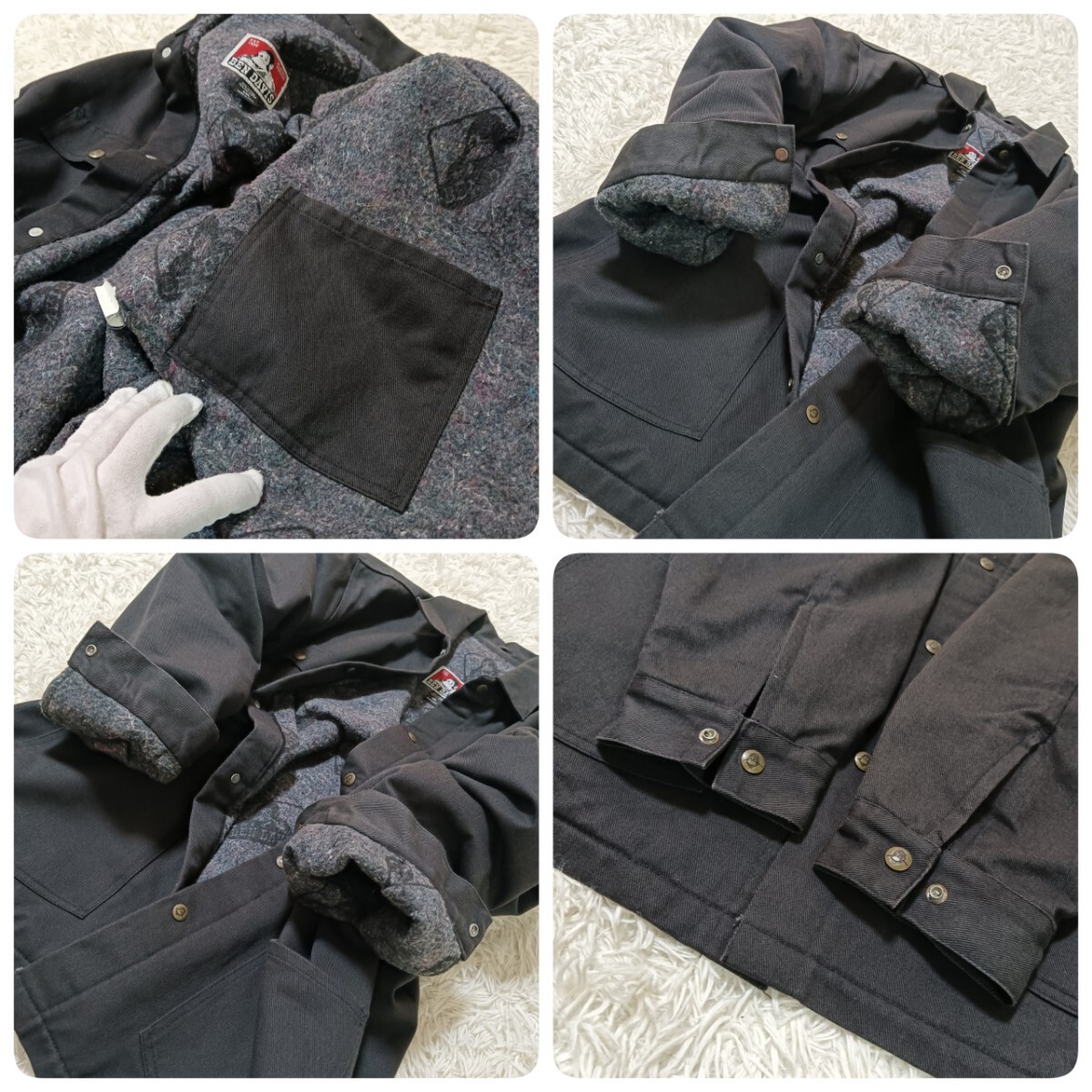 希少★80-90's USA製 VINTAGE OLD BEN DAVIS カバーオール ジャケット アウター ブランケット 裏起毛 ボア ブラック 黒 メンズ サイズXXL ヴィンテージ オールド ベンデイビス アメリカ製 古着 USED