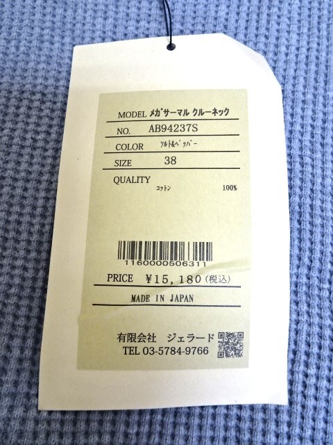 ●1045K6 JELADO ジェラード メガサーマル クルーネックシャツ 長袖 サイズ38