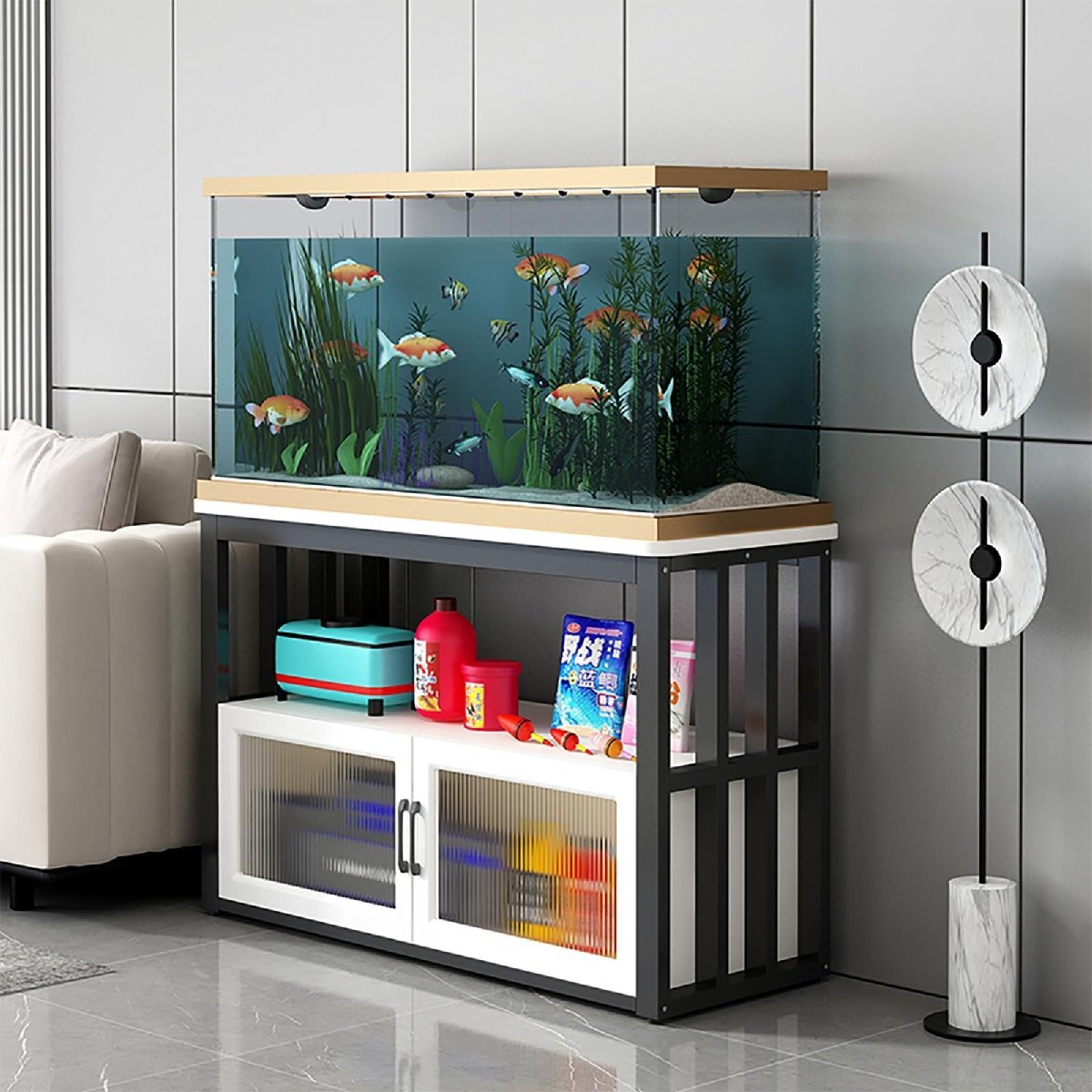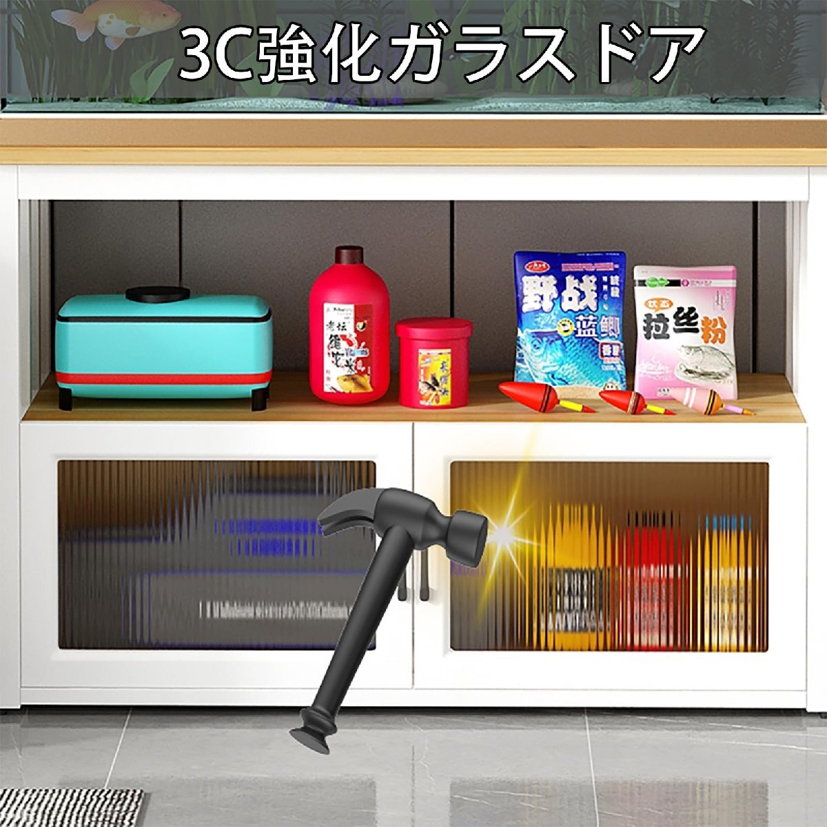 多様化した収納のための3層仕切り:1階は水槽専用、2階のオープン収納スペースは緑の植物や装飾品を置くのに使用でき、3階の防塵収納キャビネットは雑貨を保管するのに使用できます。広々としたカウンタートップと配慮の行き届いたガードレールのデザインにより、物の落下を防ぎ、美しさと実用性を兼ね備えています。