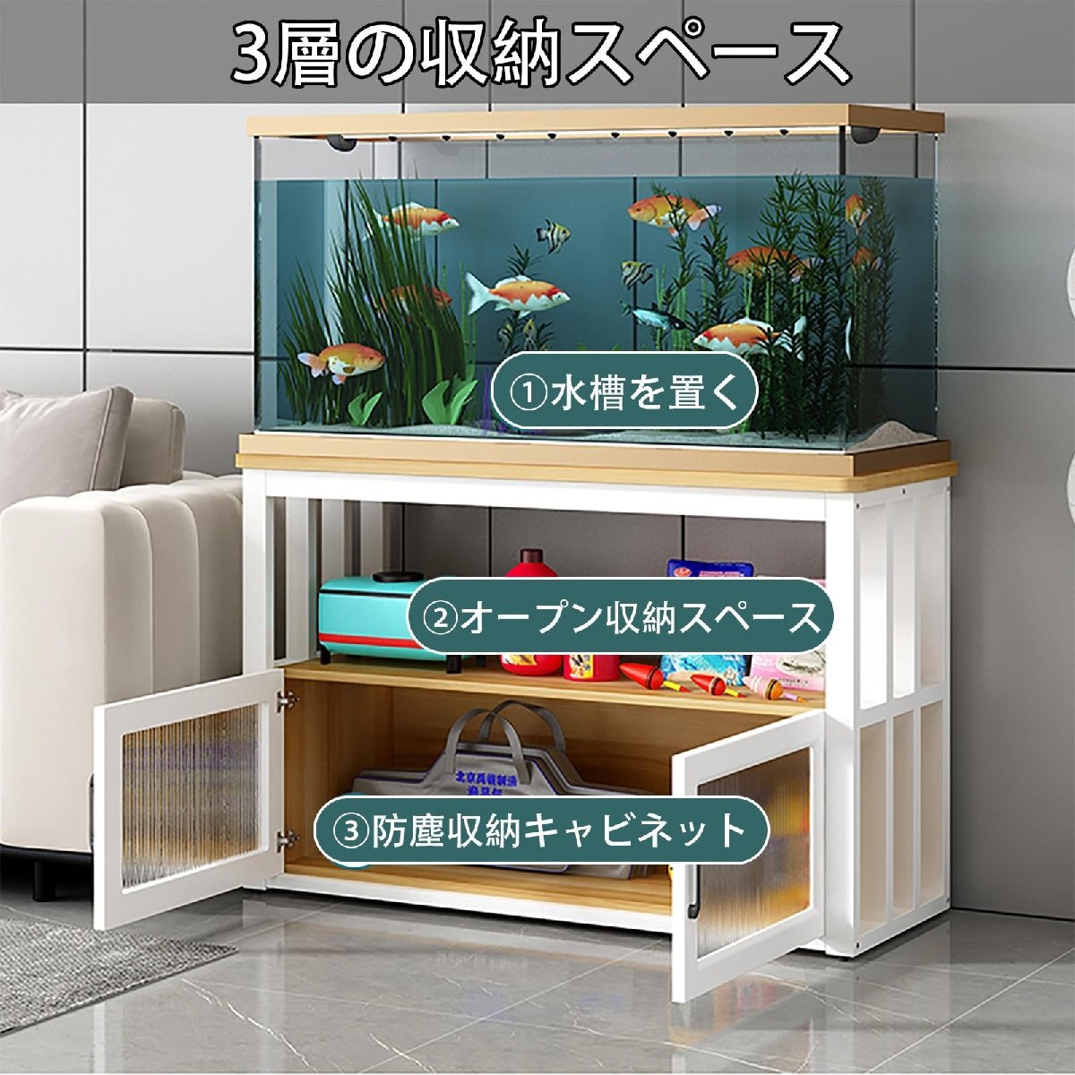 多用途で様々なシーンで活躍:魚缸架、カメタンク台、ソファーサイドテーブル、コレクション展示台、雑物収納棚など、様々な用途に使用できます。家庭のリビングルーム、オフィス、ホテルのロビー、店舗など、収納機能とデザイン性を兼ね備えたアイテムです。?収納機能豊富で整理がスムーズ:上部は水族箱やカメタンクを置くのに最適で、中間のオープンスペースでは本や装飾品、植物を陳列できます。下部の大容量収納庫は防塵・防湿性能に優れ、雑物や水槽用品をきれいに収納できます。収納領域が明確に分かれているので、部屋を常に整然と保てます。?製品名:水槽置き台/水槽スタンド 製品材質:プレート+スチールフレーム製品の色:ホワイト , ホワイト 黑 , ウォールナット 白 , ウォールナット 黑 , グレー 白 , グレー 黑製品サイズ:60x30x70cm , 60x35x70cm , 60x40x70cm , 60x45x70cm , 65x35x70cm , 65x40x70cm , 65x45x70cm , 70x40x70cm , 70x45x70cm , 80x40x70cm , 80x45x70cm , 90x40x70cm , 90x45x70cm , 100x40x70cm , 100x45x70cm , 100x50x70cm , 120x40x70cm , 120x45x70cm , 120x50x70cmパッケージの詳細水槽棚×1ご注意ください:1. 手作業による計測のため、多少の誤差が生じる場合があります。実際の商品を参考にしてください。2. 実際の商品の色は画面上の色と多少異なる場合があります。実際の商品を参考にしてください。3. 本製品には水槽スタンドのみが含まれ、水槽やその他の装飾品は含まれません。弊社製品についてご質問がございましたら、お気軽にお問い合わせください。