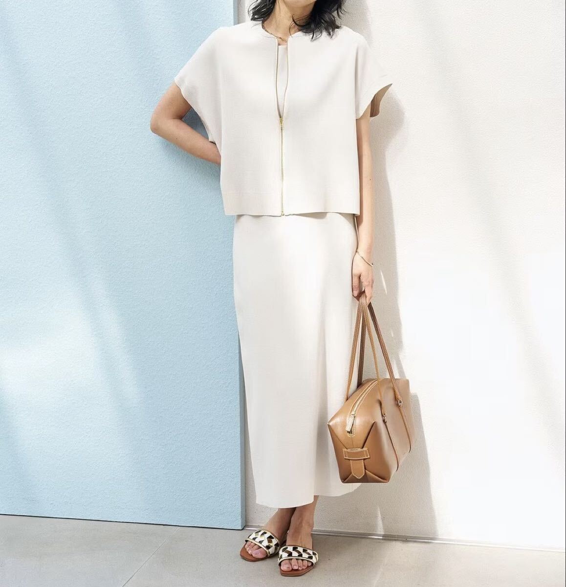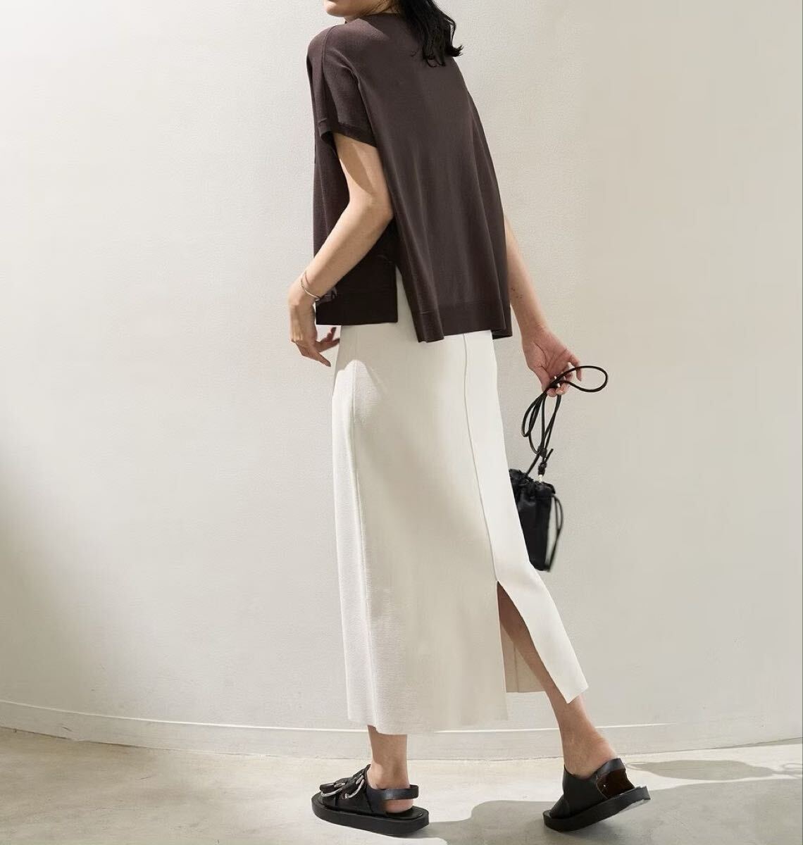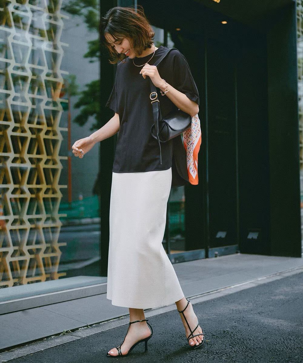 シンプルなデザインでスタイルを選ばず着用できる、ストレスフリーな万能ニットスカート