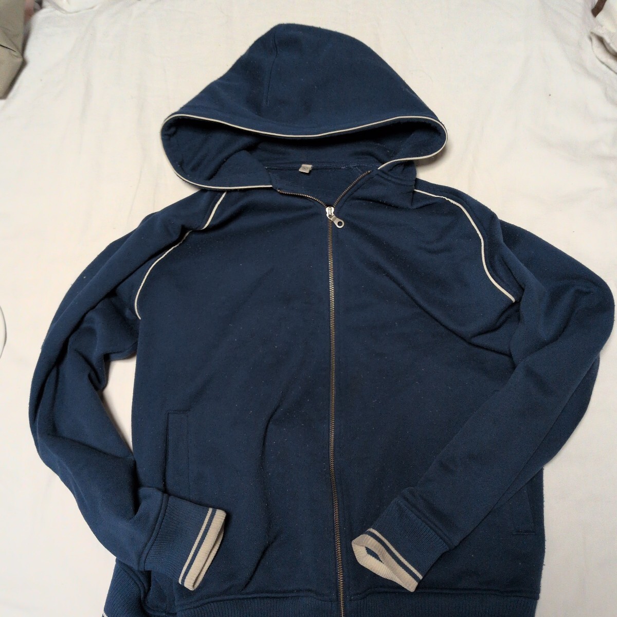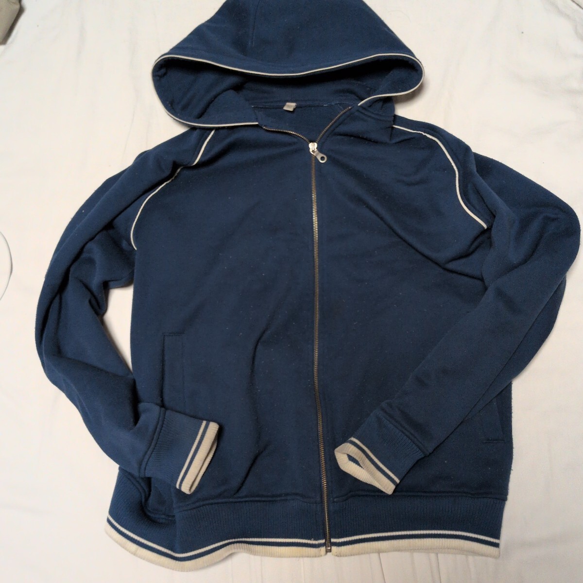 だいぶ前のユニクロのジップアップパーカー ポリエステル100%です。かなり着用しましたので、多少の毛羽立ち、着古し感があります。暖かいです。