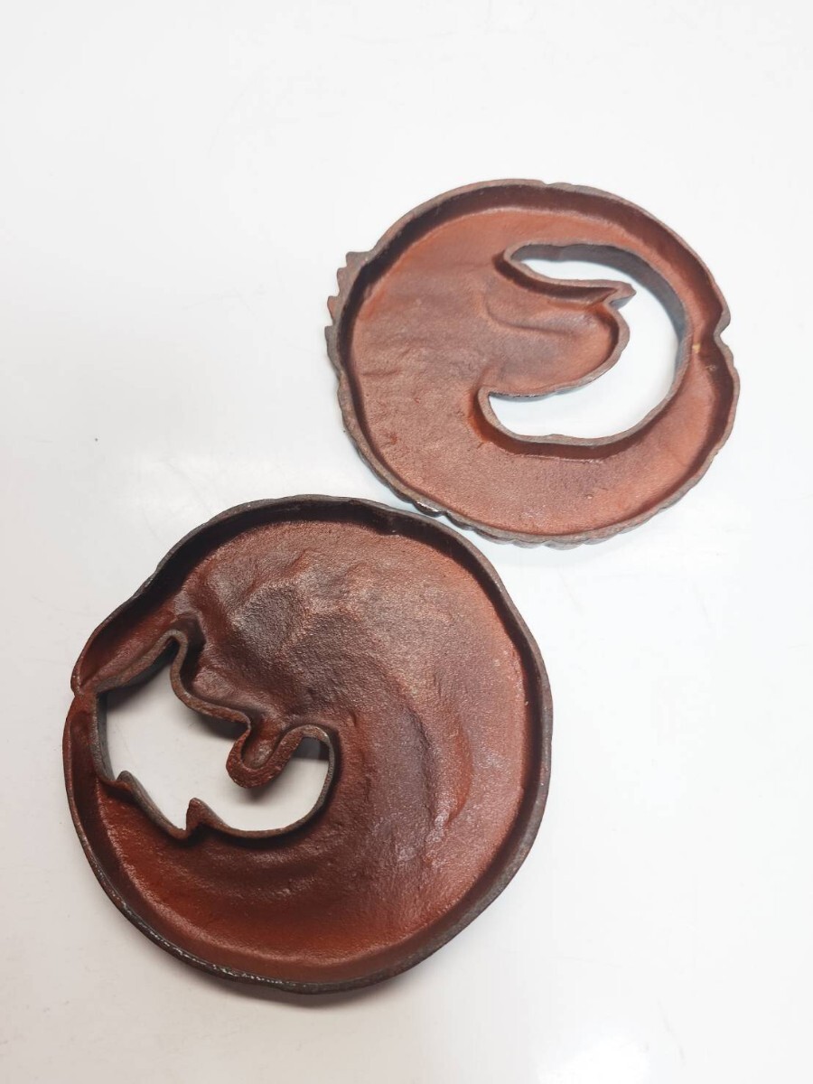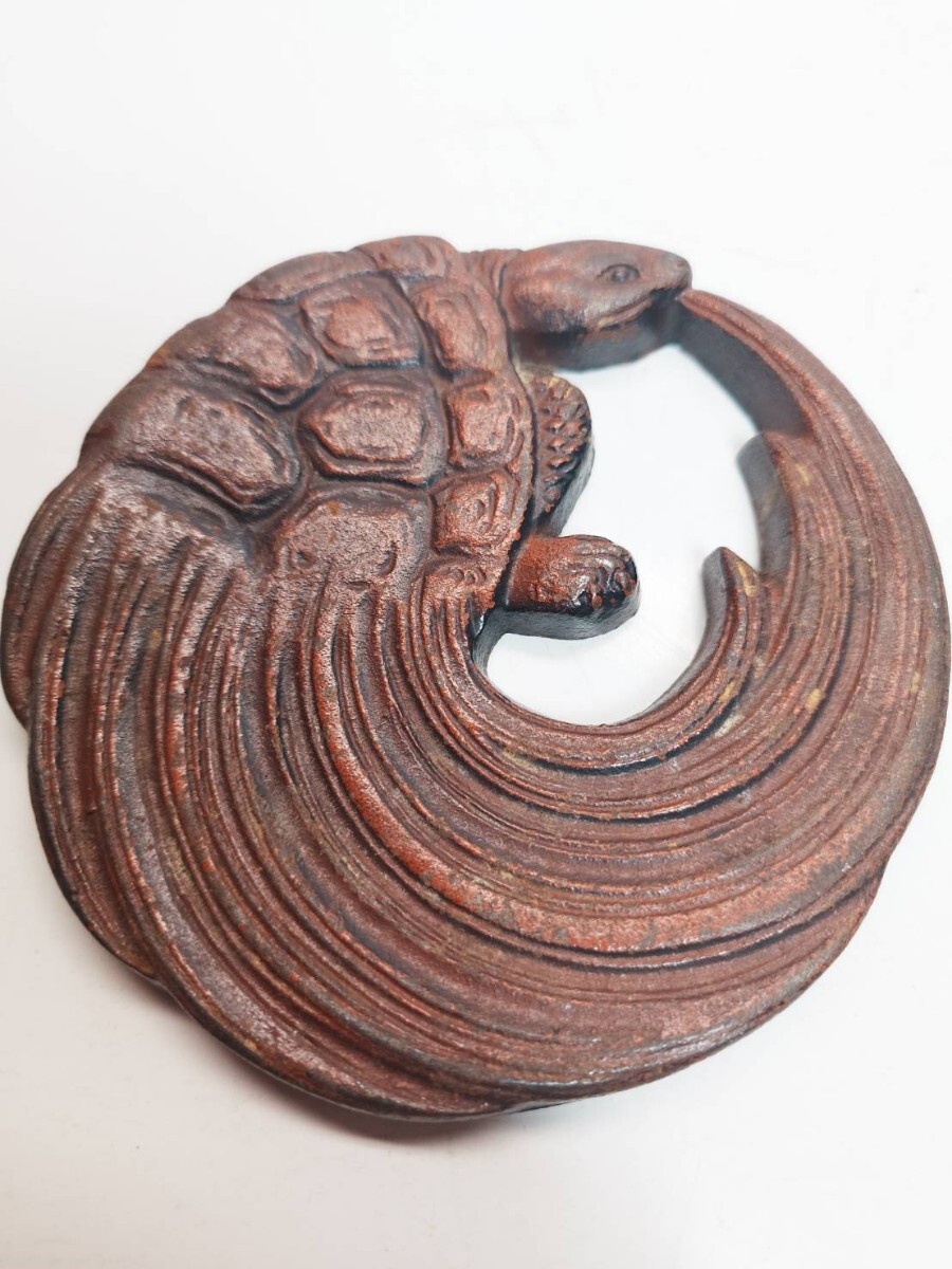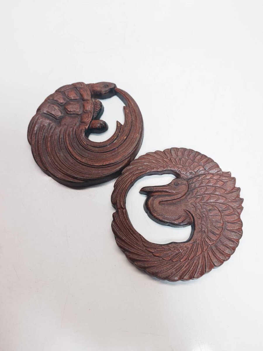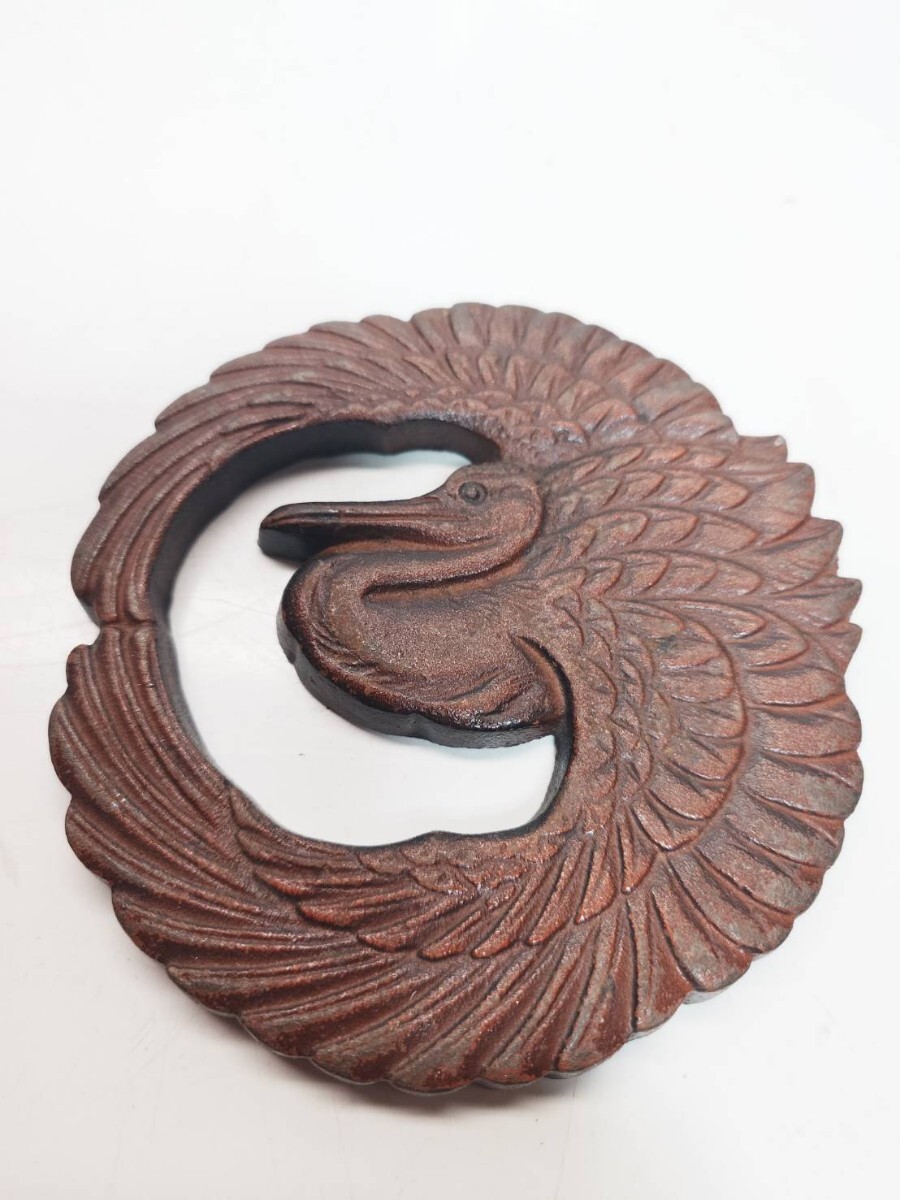 商品名 : 鉄製 鍋敷 鶴 亀 置物 直径約13cm 縁起物 昭和レトロ
