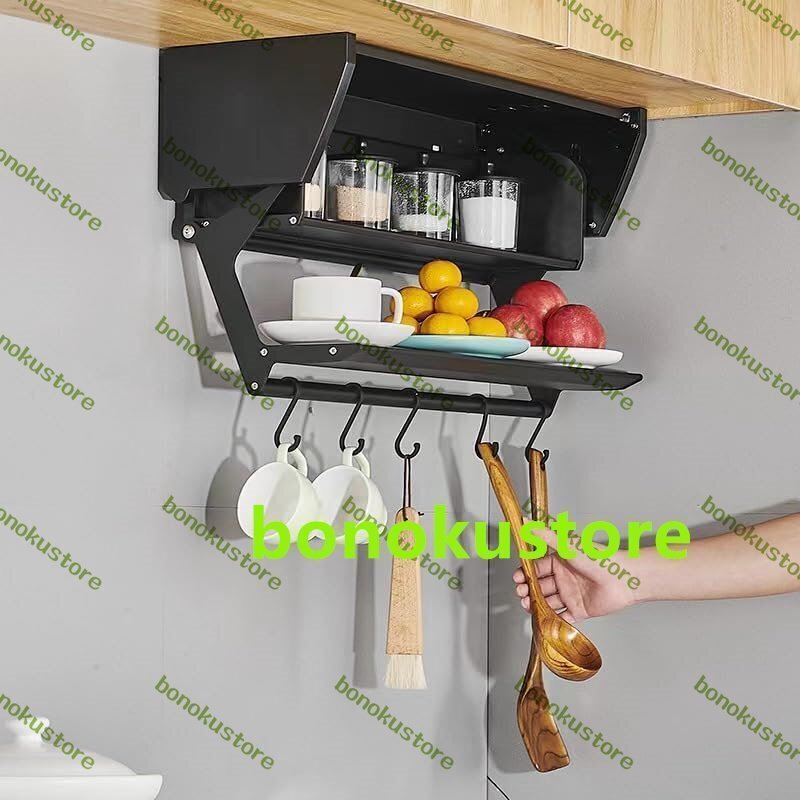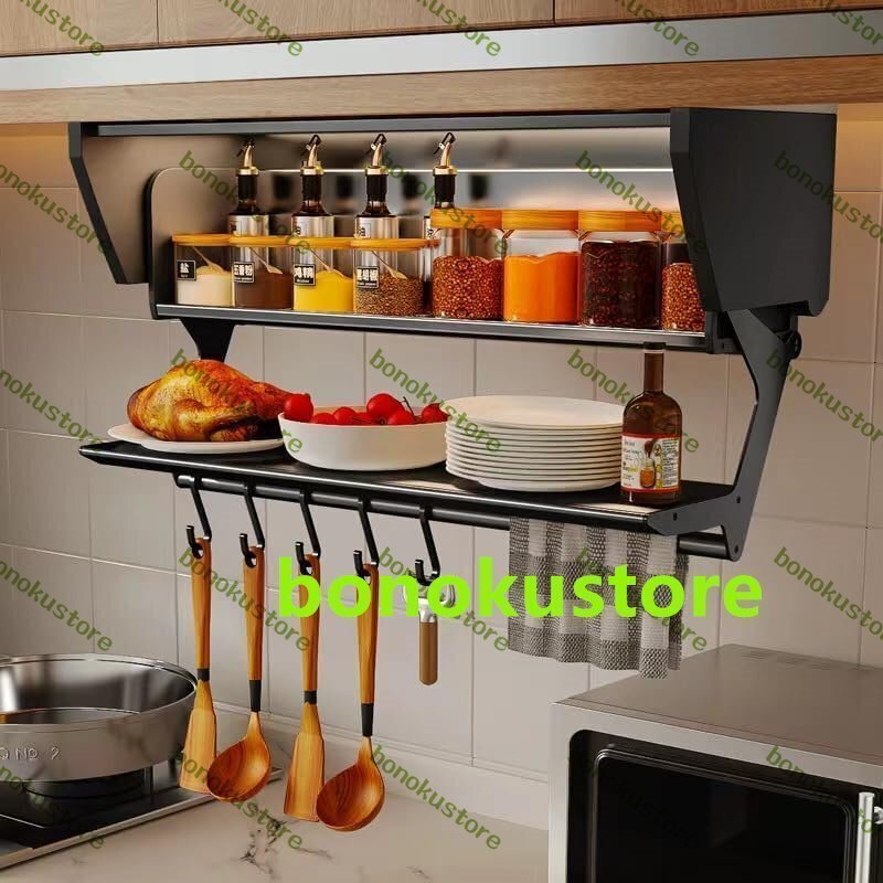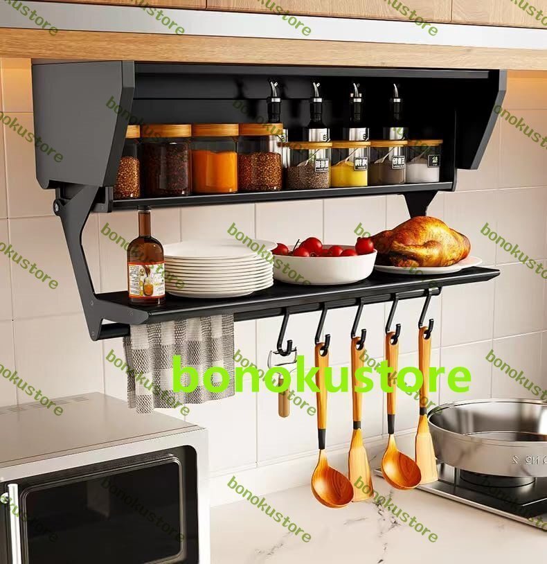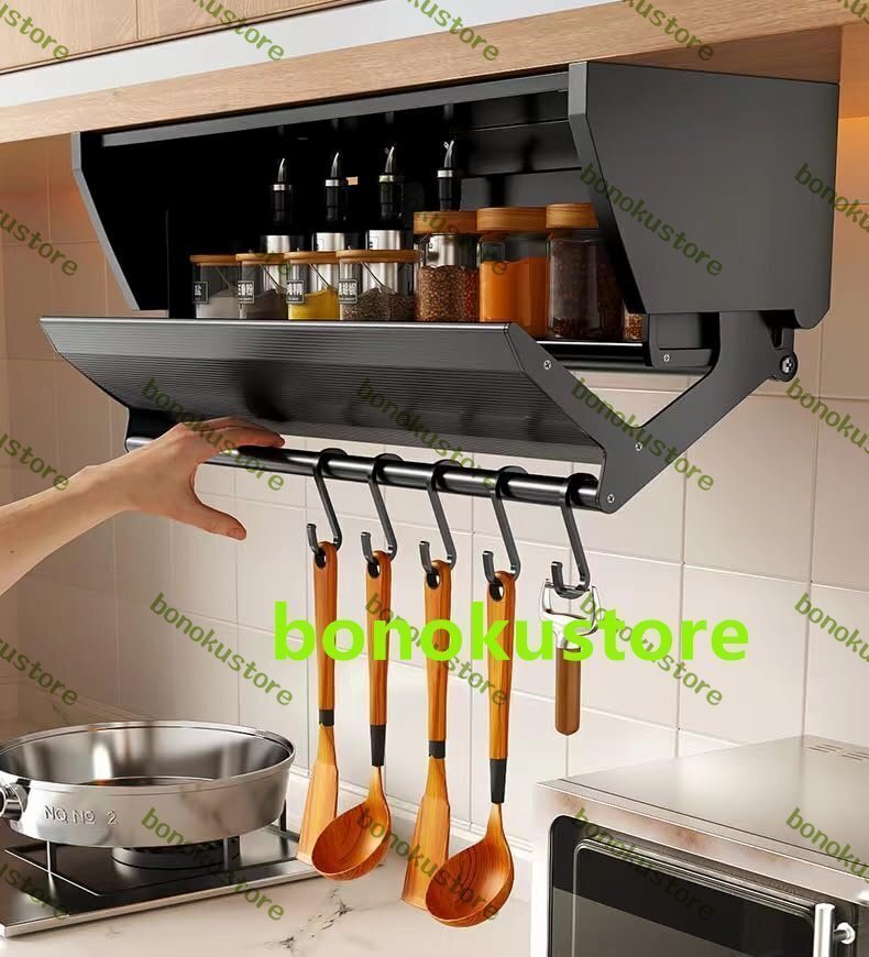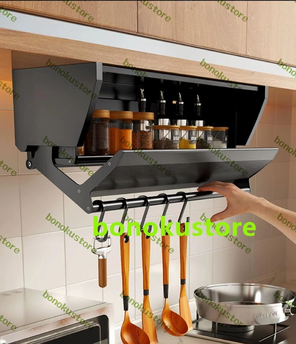 キッチン調味料収納棚折りたたみ収納棚多機能ドロップダウン式昇降引籠ハンガー下調味食器棚収納神器ハンガー下調味料収納棚壁収納キャビネット折りたたみ昇降引籠ロッカー (L50*W21.5*H15CM 黒い) 黒い L50*W21.5*H15CM