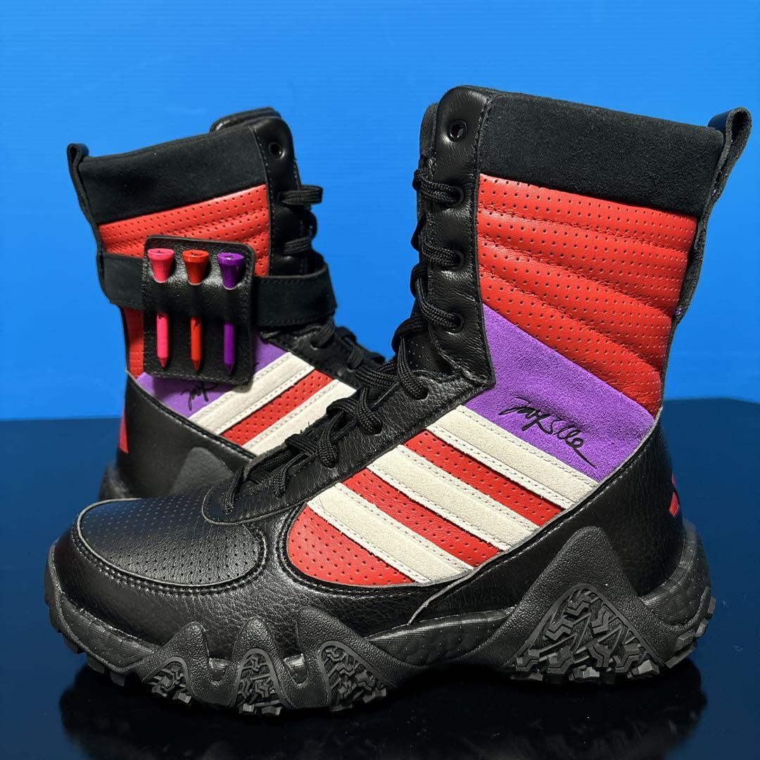 ボクシングのリングシューズをモチーフにした斬新なハイカットデザインをあしらい、力強い印象を与える特別デザインに
