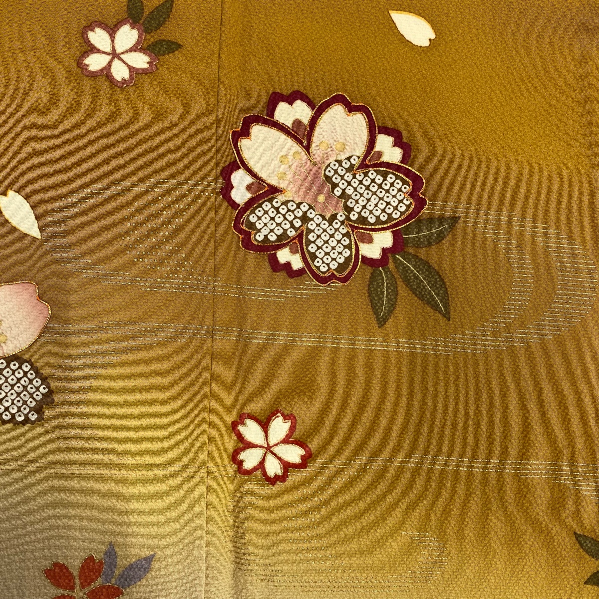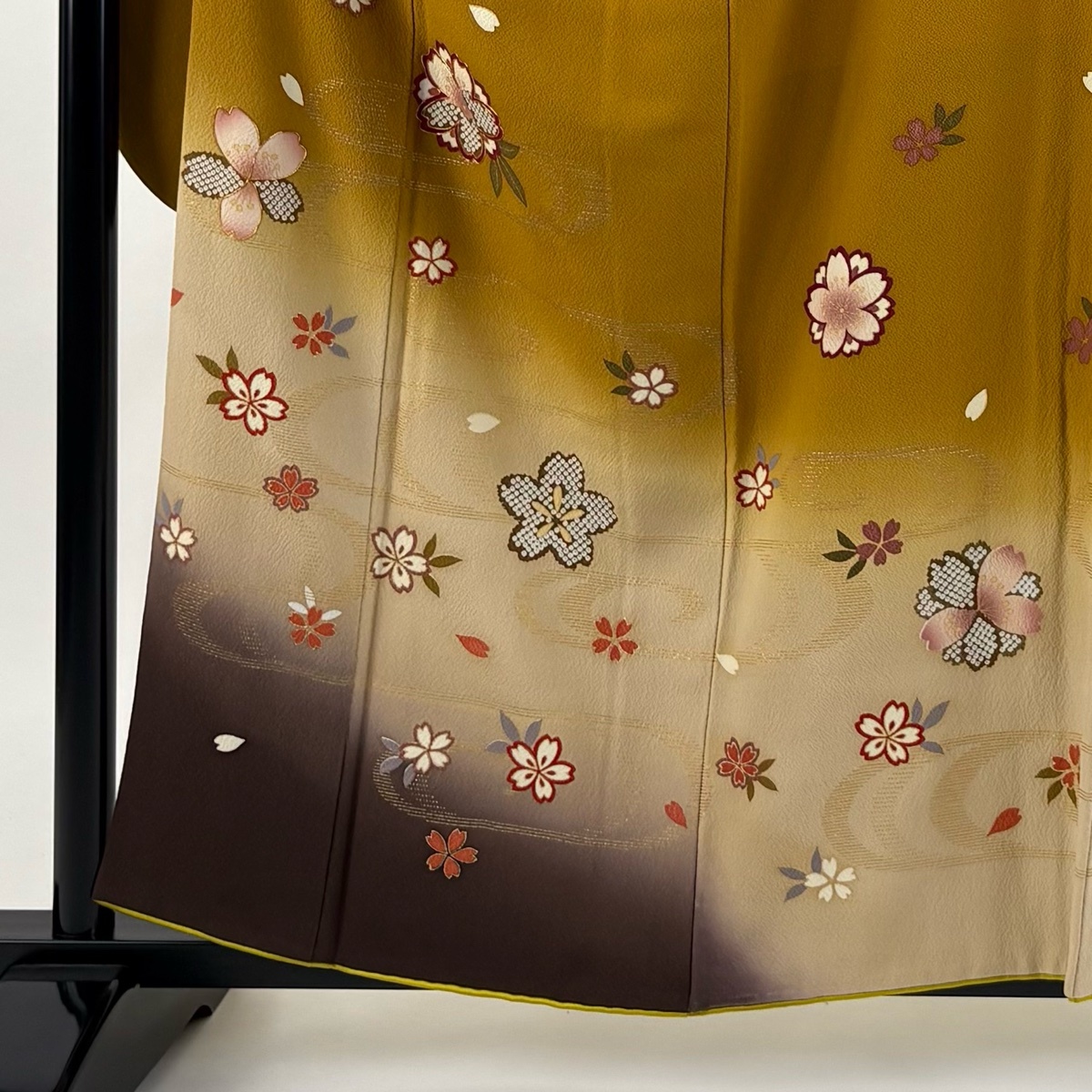 | 振袖 秀品 桜 観世水 金糸 金彩 山吹茶色 袷 身丈160 裄丈65 M 正絹 【中古】 |