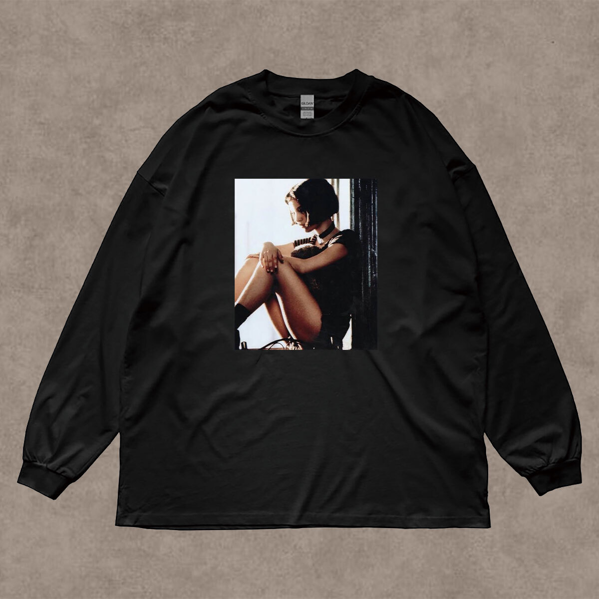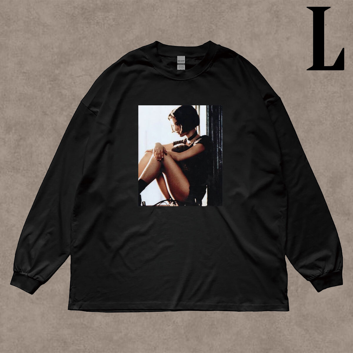 マチルダ フォトプリント リブ付き 長袖 Tシャツ ロンT ナタリー ポートマン キレイめ カジュアル 6.0oz コットン100% ブラック L