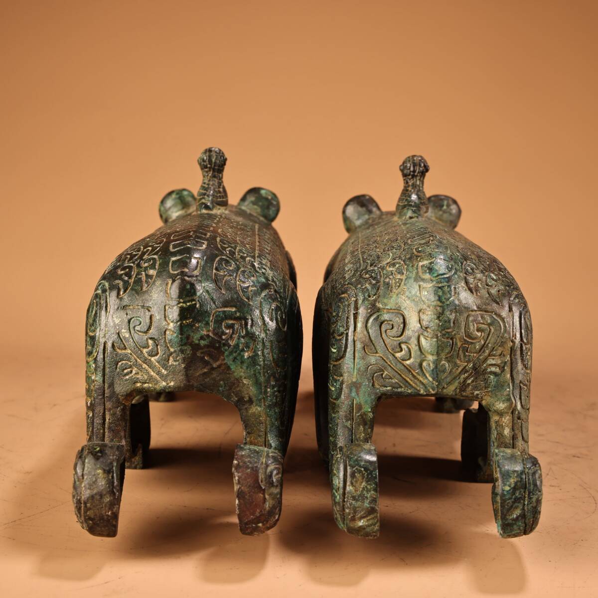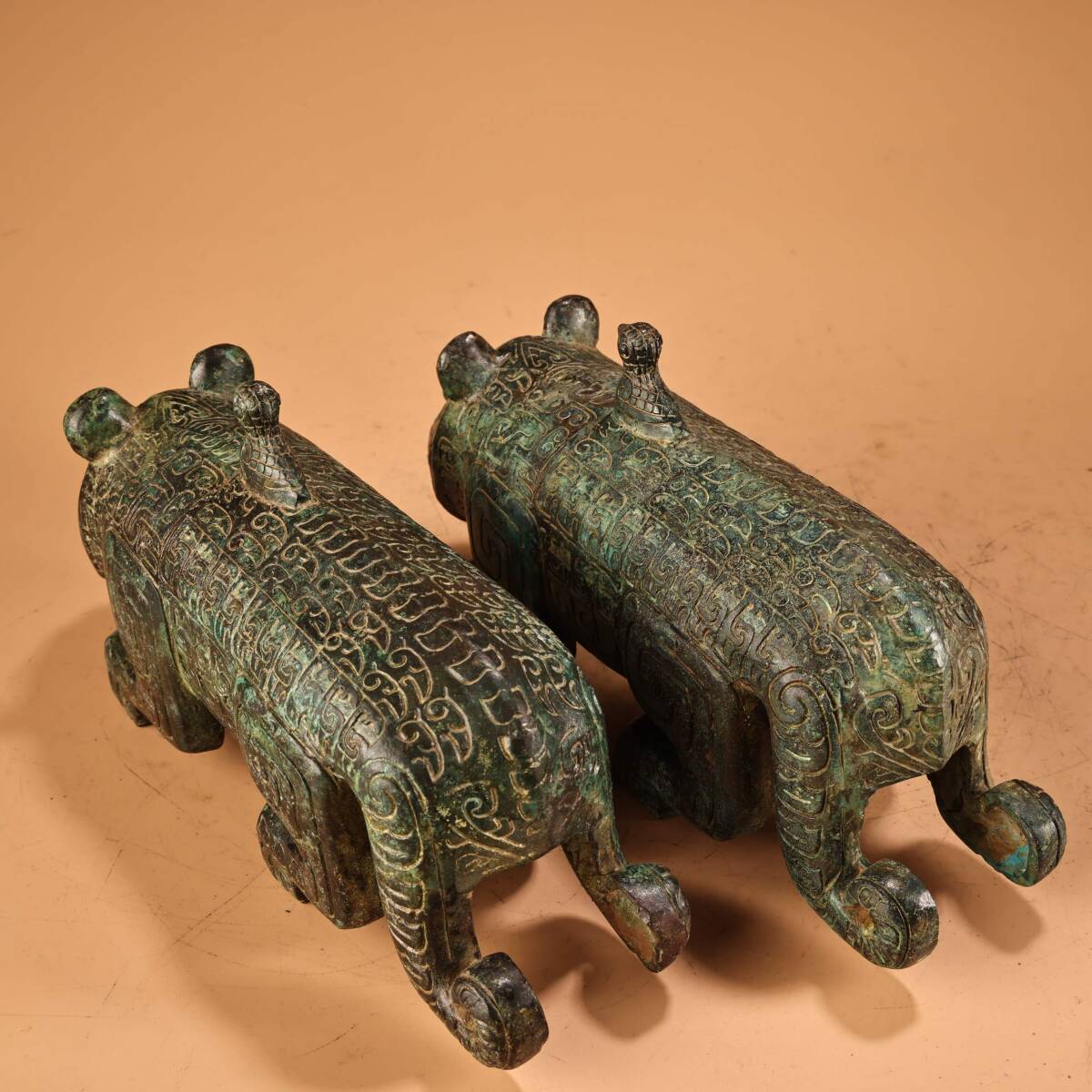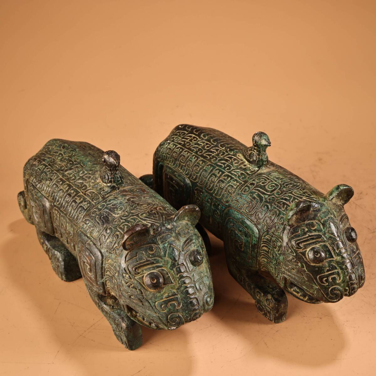 商品名: 2つの尾を持つ一対の青銅の虎とうずくまっている鳥