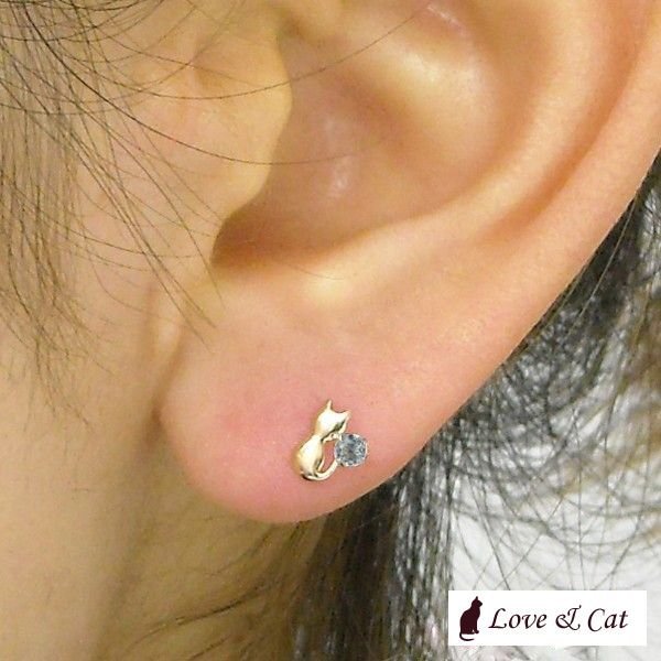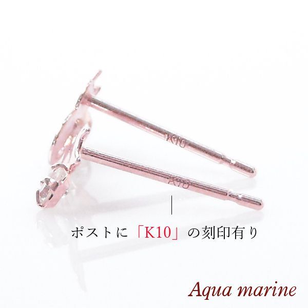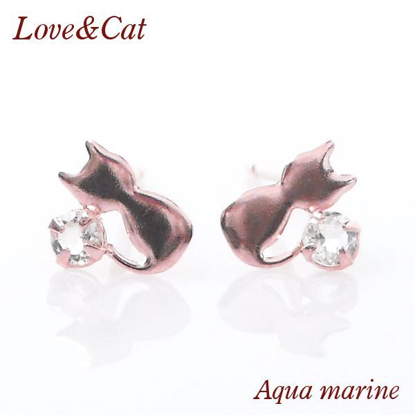 ピアス アクアマリン 天然石 一粒 猫 3月誕生石 レディース 50代 40代 60代 30代 20代 ねこ ネコ 10金ピンクゴールド k10pg