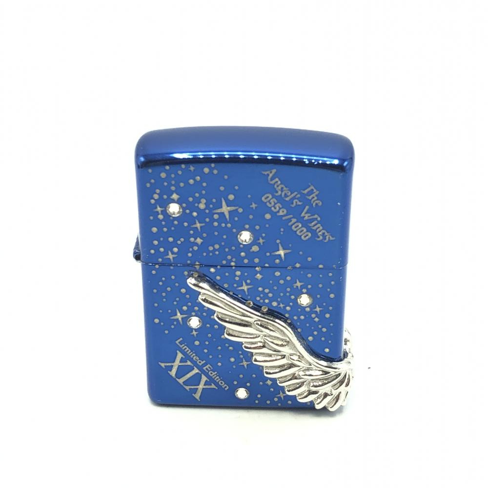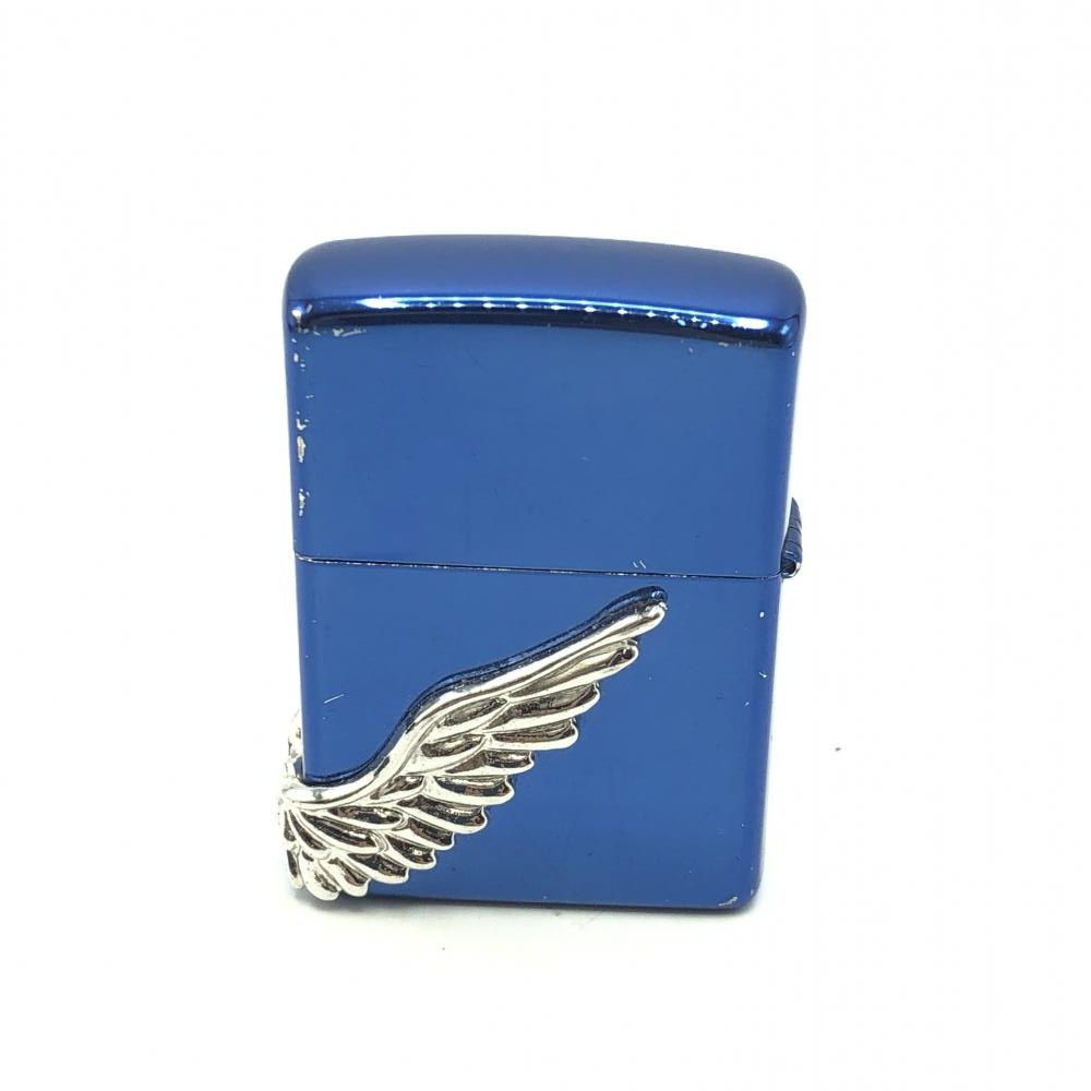 | 209999093753)エンジェルウイング ZIPPO 使用済み ブルーシルバー ジッポ ジッポライター |