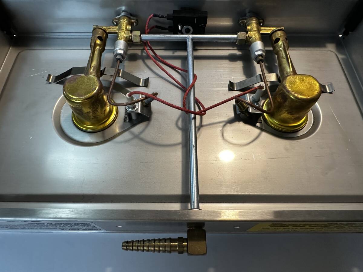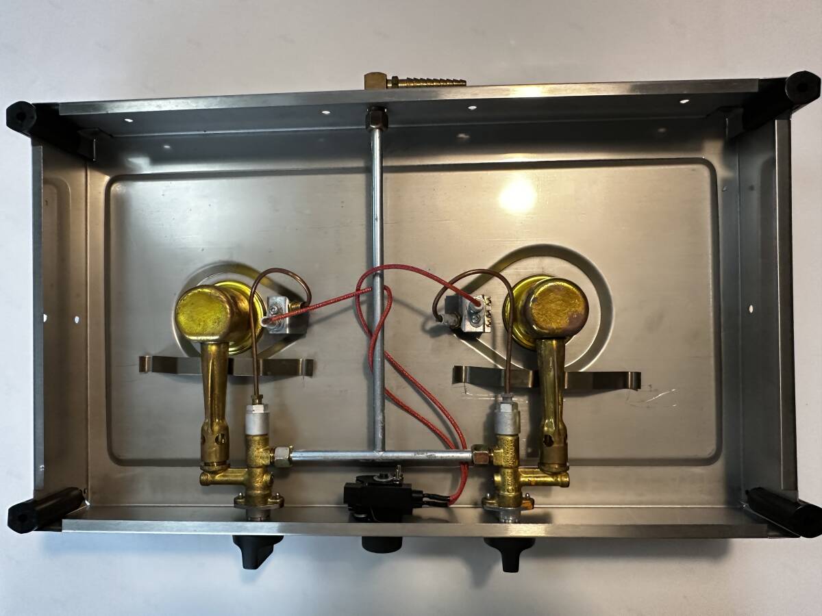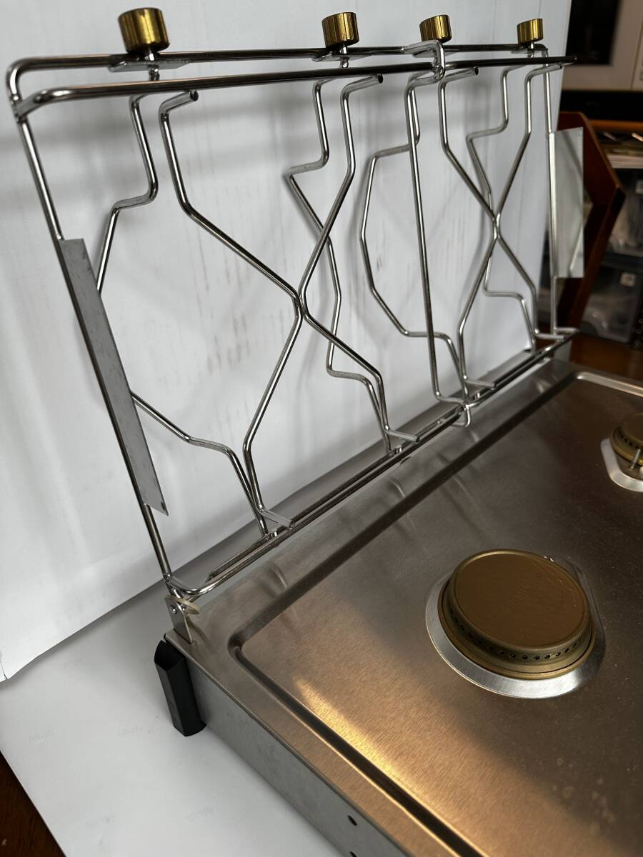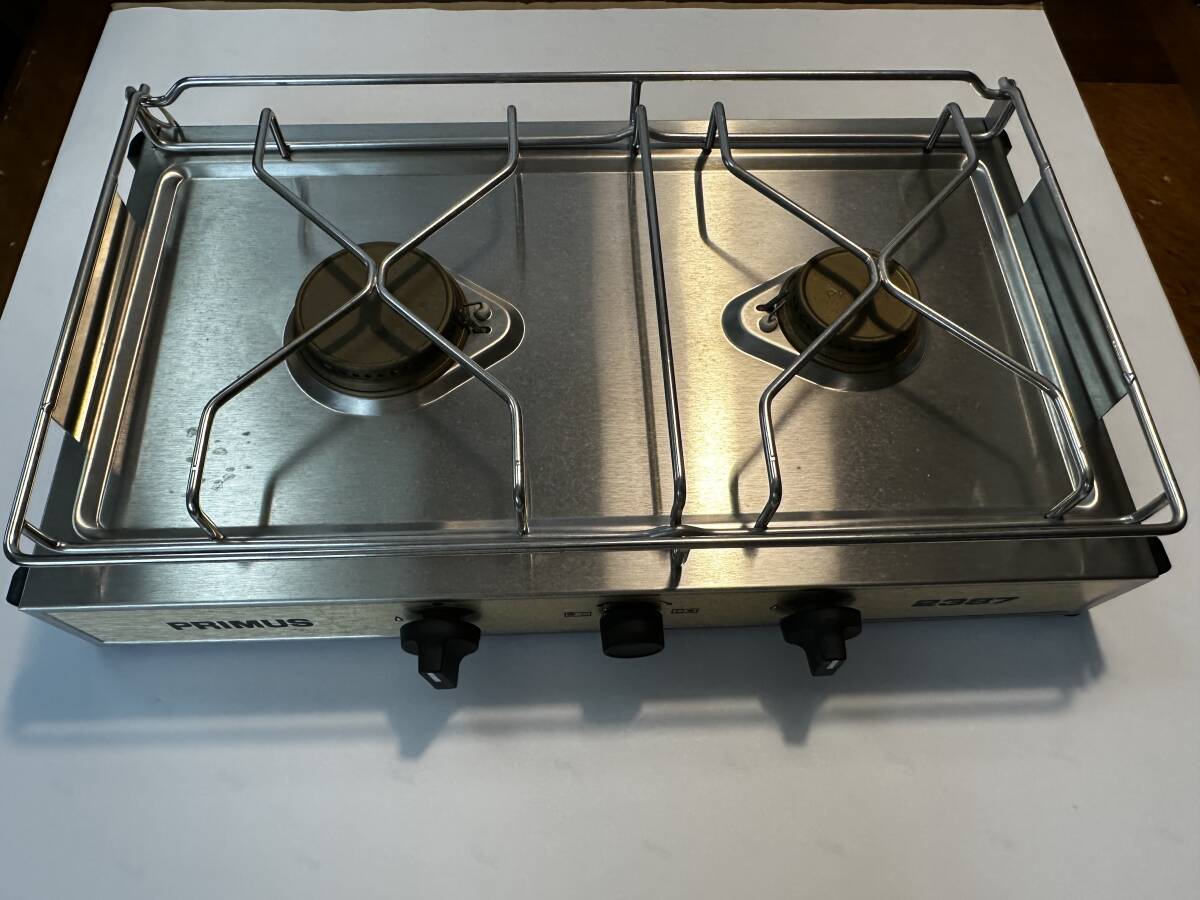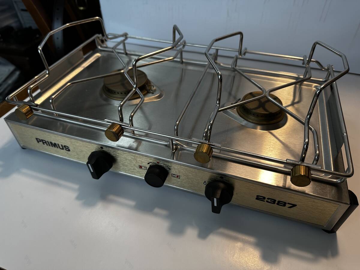 【商品説明】数多くあるオークションの中から、私のオークションにお立ち寄り下さいまして誠にありがとうございます。迅速・丁寧をモットーに掲げ、心を込めてご対応お取引をさせて頂きますので、どうぞ宜しくお願いいたします。今回の出品商品は『プリムス PRIMUS ツーバーナーガスコンロ 2387-4 本来船舶用真鍮・ステンレス製 希少品 未使用美品』です。若い頃所有していたクルーザーで使用するために購入した、2台のうちの一台で、未使用のまま保管していた物です。映像からもお判りになるかと思いますが、経年の割には美品状態を保っていると思います。本来の使用目的に叶った使い方をして頂くのが一番嬉しいのですが、最近のクルーザーには標準で付いていますので、むしろアウトドアでの使用がいいかと思います。非常に堅牢な造になっており、少々乱暴な扱いにもビクともしないと思います。点火装置も全く問題ありませんし、ガスへの点火も確認しております。ガスはカートリッヂ式のブタンやボンベ入りの割安な市販のLPガスも使えますので、色々なシーンで活躍できる事間違いありません!!別売りで購入したパーツもお付けしますが、脚については色々と特別に加工をしなければなりませんので、ご承知おき下さいませ。またこの商品は、船舶用としての需要だった為、流通量としては非常に少なく、最近では他サイトを含め、滅多に見かける機会が無くなりました。素人採寸ですが、大まかな寸法(突起間)・重量(本体のみ)を記して置きます。横幅 × 長さ × 高さ × 重量32㎝ × 50㎝ × 10㎝ × 3㎏お探しの方を始め、興味がおありの方、ぜひこの機会に如何でしょうか?※ 大切なお知らせ ※商品説明の文中の訂正について(別売りで購入したパーツもお付けしますが、脚については色々と特別に加工をしなければなりませんので、ご承知おき下さいませ。) との表記がありますが、脚につきましては私の記憶違いで、全く別商品の物である事が判明いたしました。ここに訂正の上取り消さて頂き、深くお詫び申し上げます。誠に申し訳ございませんでした!!