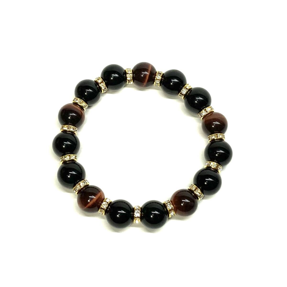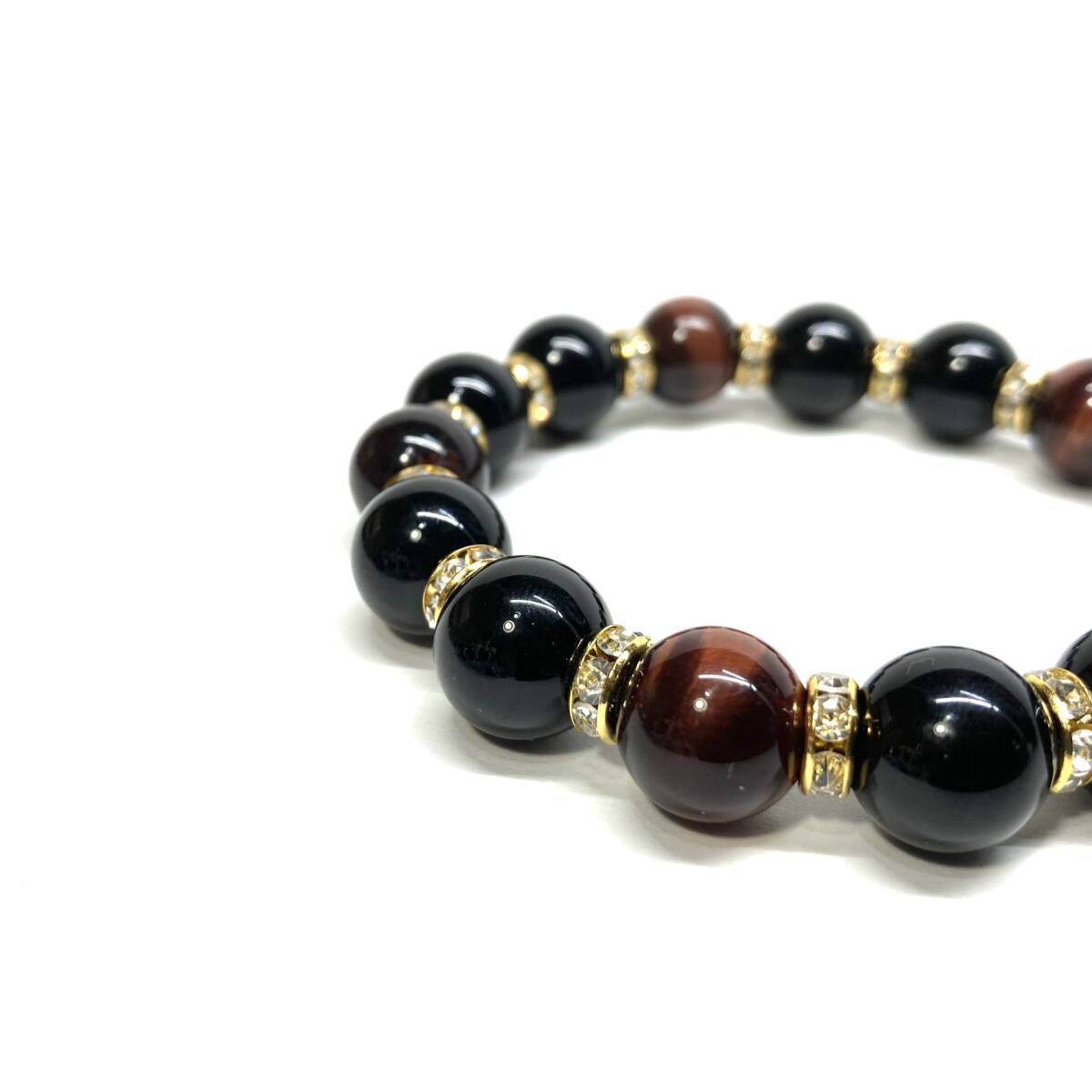 モリオン&レッドタイガーアイ パワーストーン ブレスレット 天然石ブレス (ゴールド) 12mm 幸運 開運 メンズ 男性