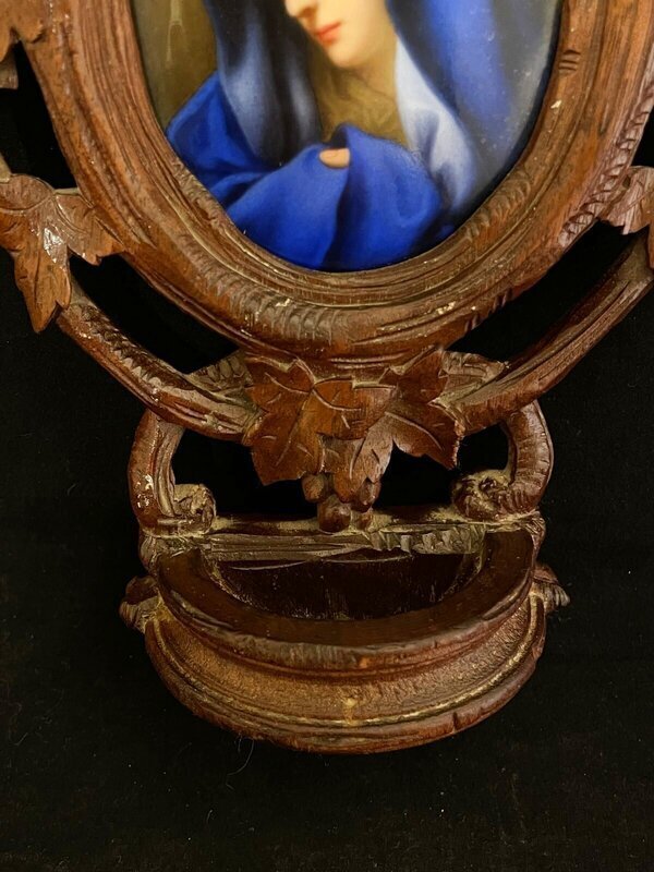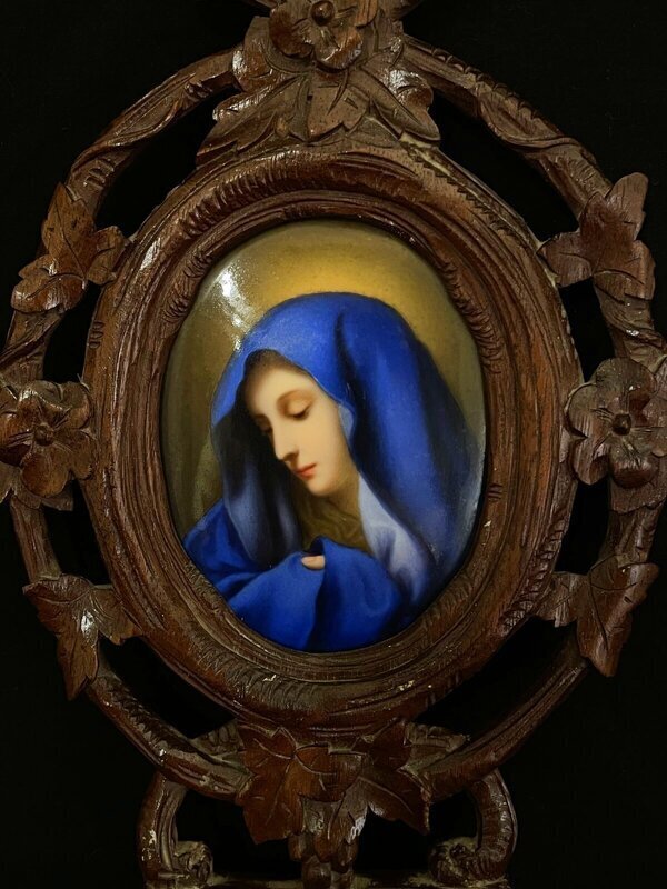 | 悲しみの聖母 19世紀 フランス アンティーク リモージュ 陶板画 聖水盤 カルロ・ドルチ | |||