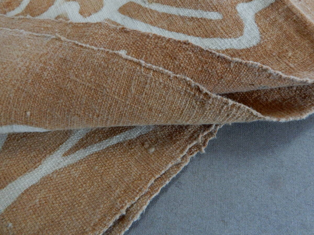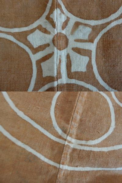 <銀の斧>木綿・古布・明治期前後のお品・かわいい2巾紋筒描・桜と菊・草木染め・茶色系・筒描き・65cm×70cm