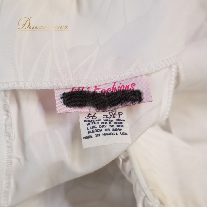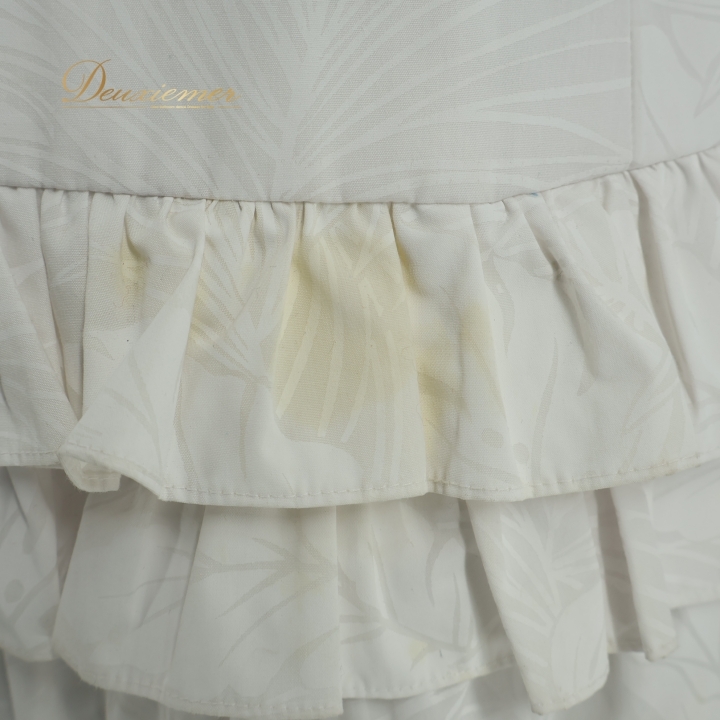 | 【商品名】フラダンス衣装 ワンピース ドレス 【サイズ】5-6表記 平置き実測:総丈約123cm(裾~肩部まで)、身幅約44cm、ウエスト約41cm ※実測の為、多少の誤差はご了承ください 【仕様】 ・背面ファスナー仕様 ・伸縮性無し 【品質表示】 ポリエステル65% コットン35% ------------------------------------ 【ポイント】 ▽CC Fashions ハワイ製 ▽爽やかなホワイト ▽モンステラ柄×ヤシ柄 ------------------------------------ 【撮影時使用トルソー】 種 類:女性用トルソー9号 (一般的に使用されるサイズです) サイズ:肩先~床約135cm(身長約160cm)、肩幅約37cm、バスト約88cm、ウエスト約66cm、ヒップ約89cm |