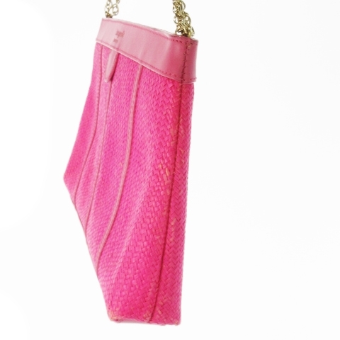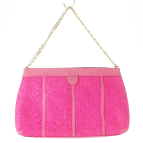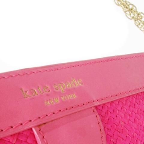 ケイトスペード KATE SPADE ハンドバッグ カゴバッグ 天然素材 レザー 革 チェーン ロゴ ピンク /CK26 ■GY99 レディース