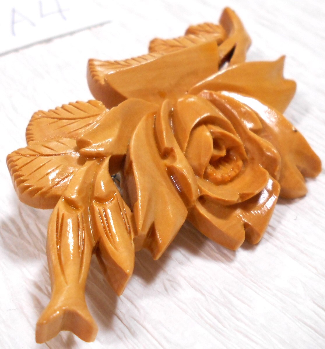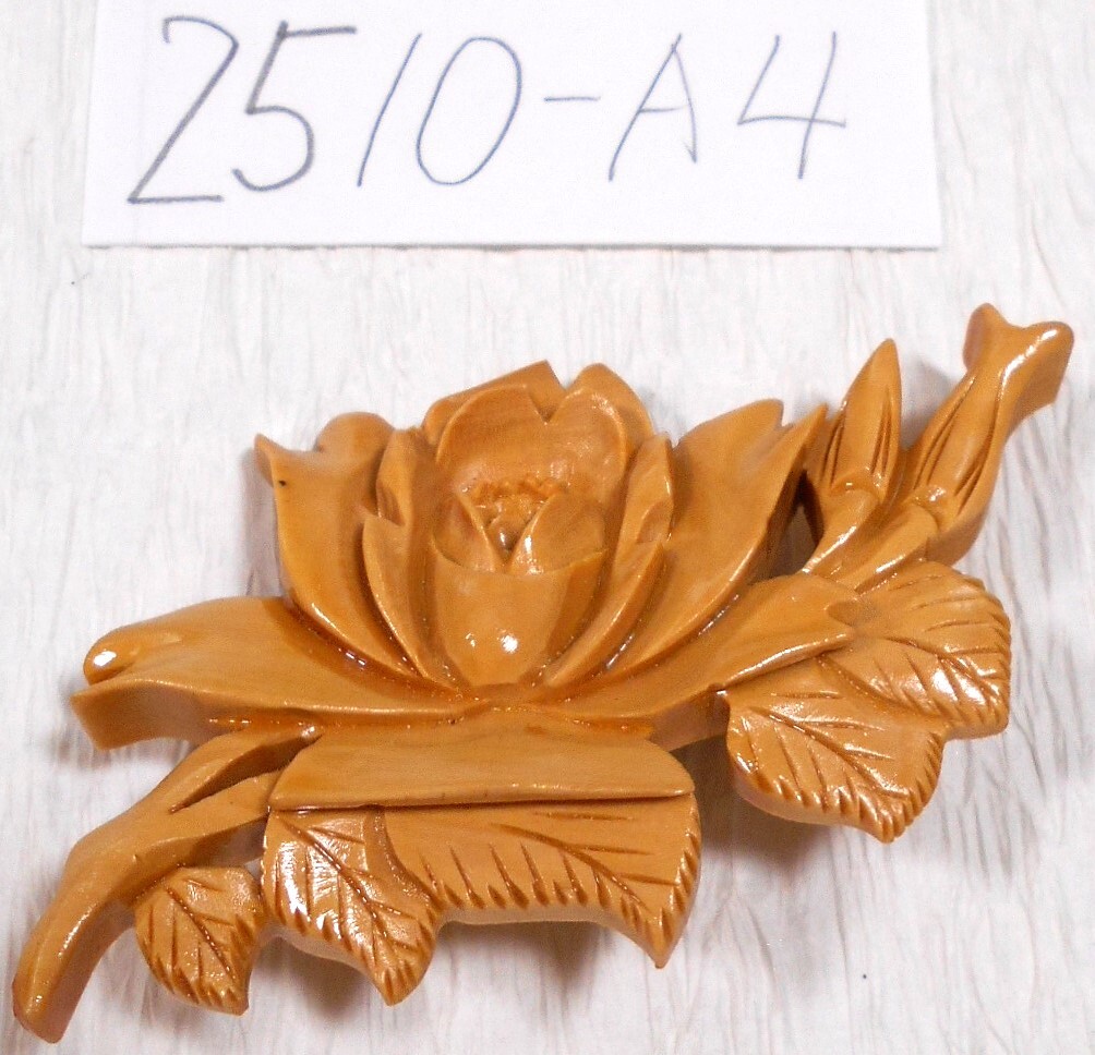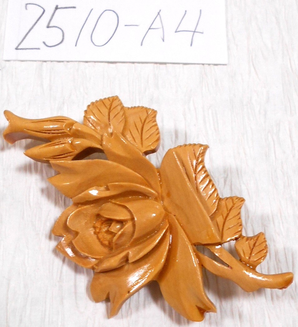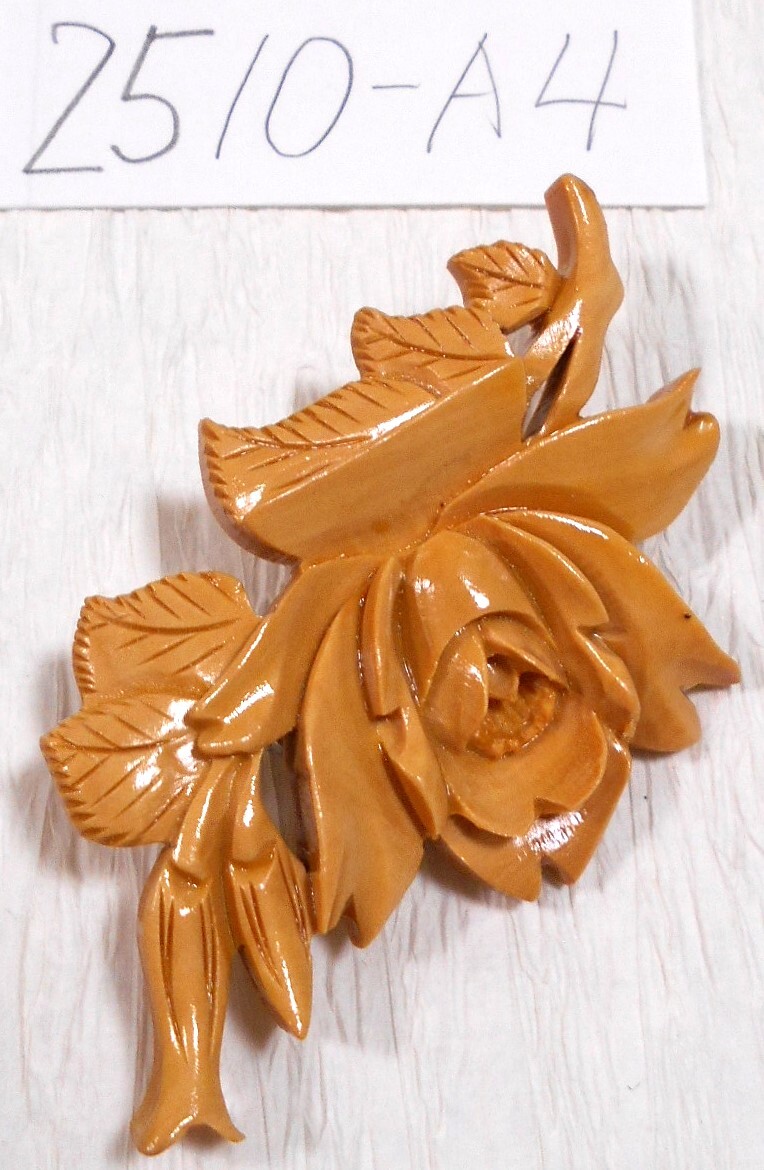 大輪のバラと蕾が二輪、葉が美しく彫られています。
