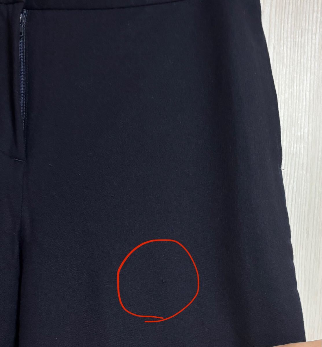 数回着用のみですが、左太ももあたり、2ミリ程度の引っかけを修繕していますのでお安くしております。