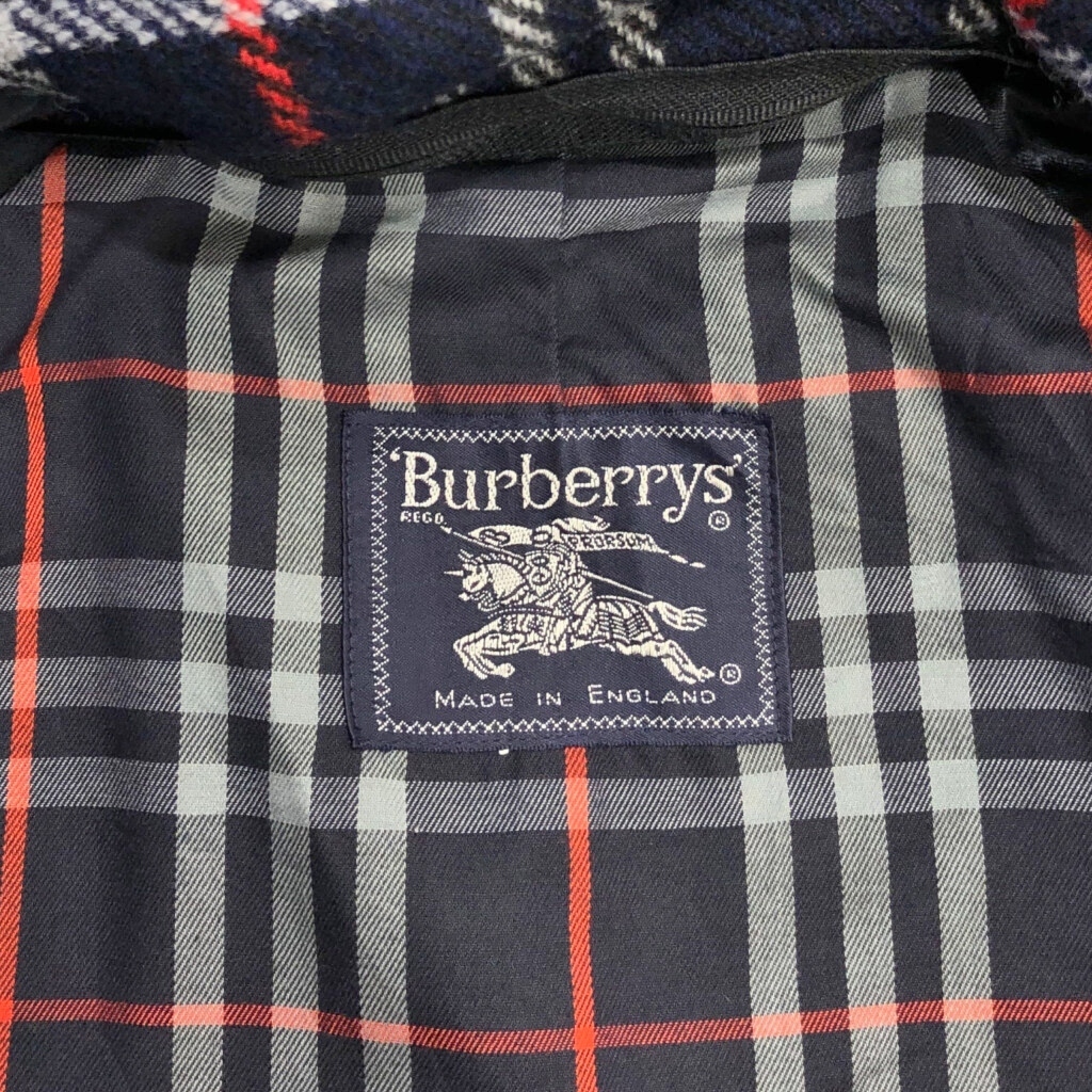 | 【商品管理番号】 V5068 【ブランド】 Burberrys/バーバリーズ 【サイズ】 60 EXL 【実寸サイズ】 着丈:約123cm 身幅:約74cm 裄丈:約98cm 袖下丈:約49cm 【主な素材】 表地 : コットン 裏地 : 13742 【色】 ネイビー 【仕様】 生産国 : イングランド製 90年代 ステンカラーコート 【状態】 汚れ:袖先、腹部、腰、裾 キズ:腹部、背中 特記事項:ボタン欠損 ライナーが付属の物ではありません。 | |||