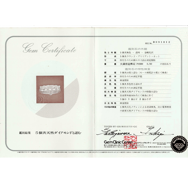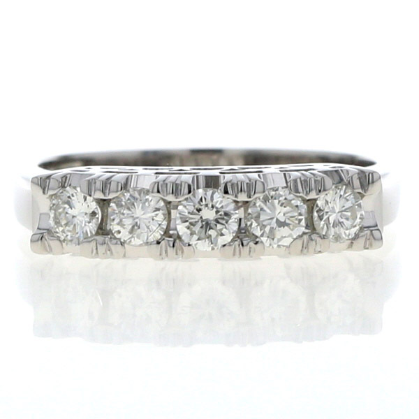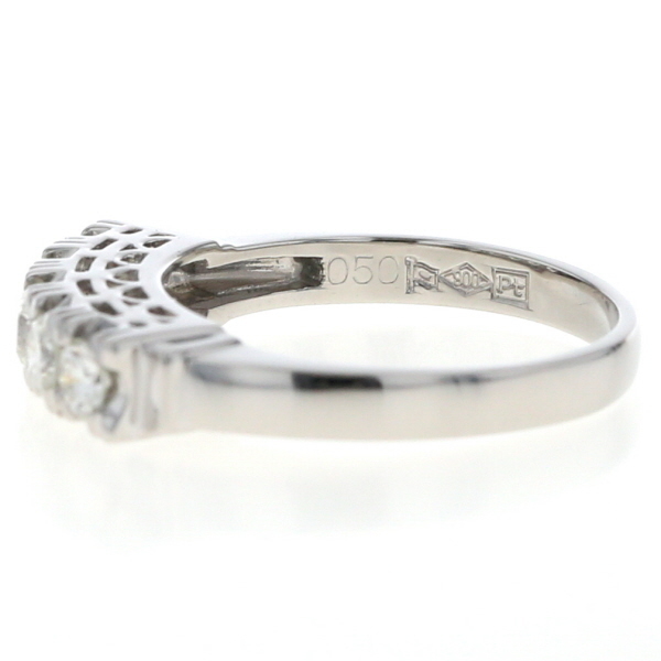 | 商品紹介 | ラウンドカットのダイヤモンドが5粒並んだ、ストレートラインのプラチナリングです。 シンプルながらも計算された配置で光を受け、手元に上品な輝きを添えます。0.50ctの程よいボリューム感が、指先を華やかに演出し、日常のコーディネートにも自然に馴染むデザインです。長く愛用できる、洗練された定番ジュエリーとしておすすめの一品です。 |