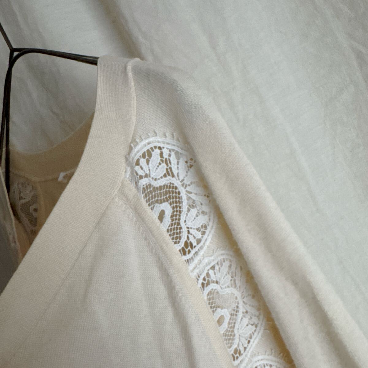 Chloe クロエ 2018 レース ウール ニット カーディガン オフホワイト XS