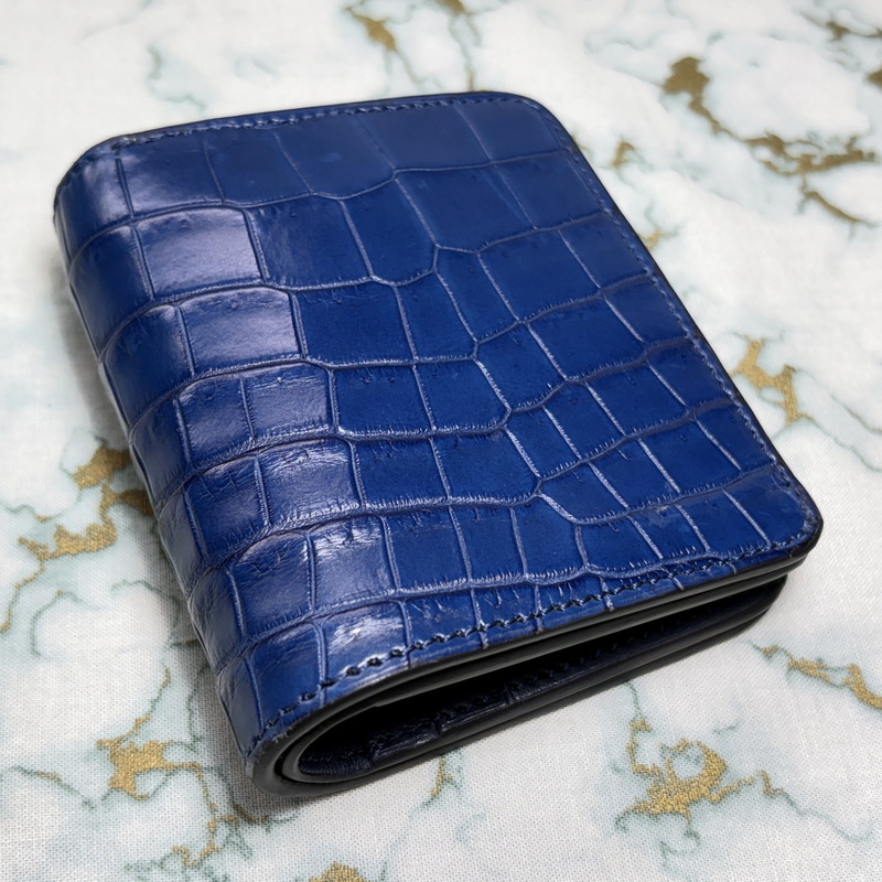 【新店記念特別出品】firebird【2つ折りショート】ポロサスレザー(藍染:藍)×国産 タンニンレザー(ロイヤルブルー) スモールクロコダイル