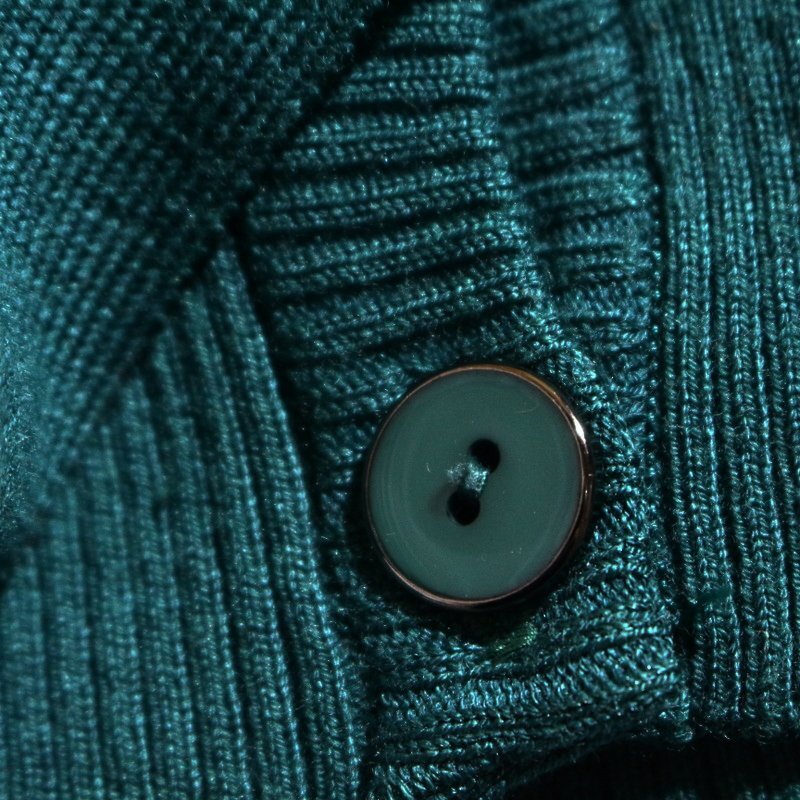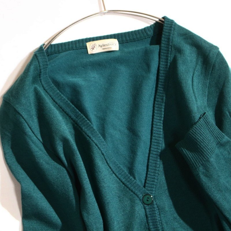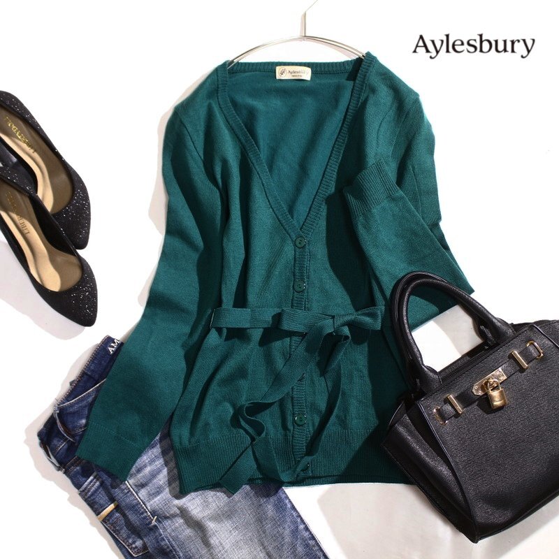 美品 アリスバーリー Aylesbury 株) 東京スタイル 秋 冬 ベルト付き ロング Vネック 長袖 ニットカーディガン M グリーン 緑 カーディガン