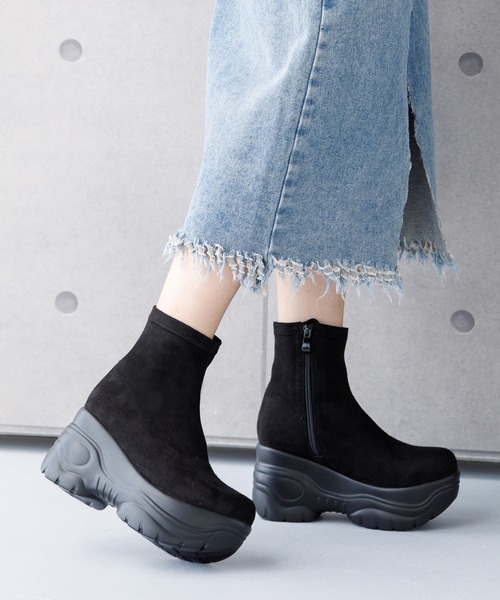 キーワード:ブーツ レディース ハイヒール プレーントゥ 厚底 秋 冬