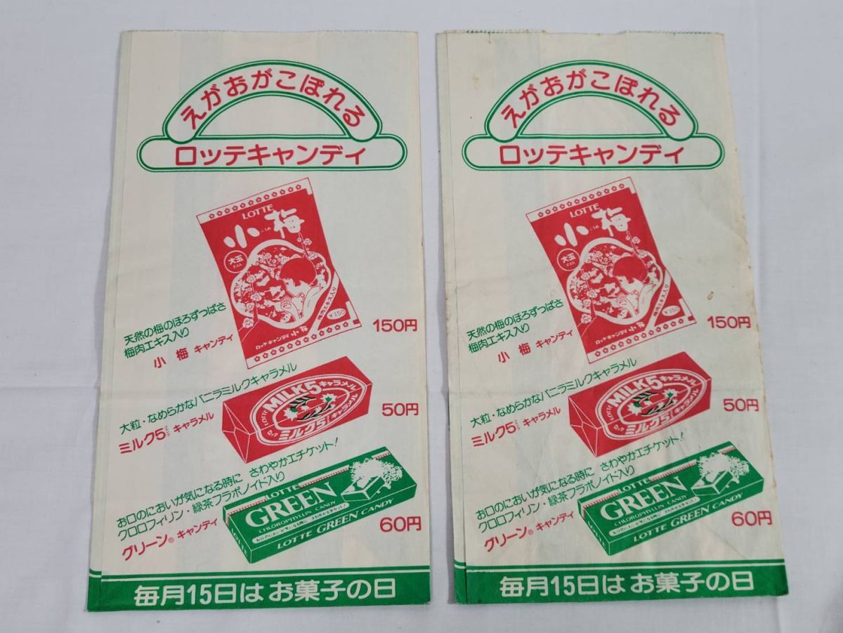 #ロッテ #カバヤ #キャンディ製品 #チョコレート製品 # 小梅キャンディ #ミルクチョコレート #紙もの #紙箱 #紙製 #広告袋 #生活民俗 #社会生活 #食品パッケージ #ノベルティグッズ #レア #ヴィンテージ #コレクション