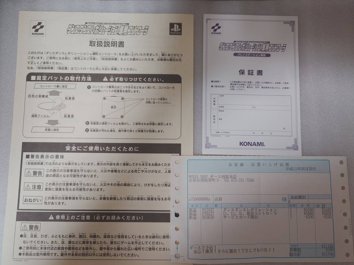 2点とも販売当時に新品で購入したものです。DDRコントローラのみレシートみつかったので同梱します。