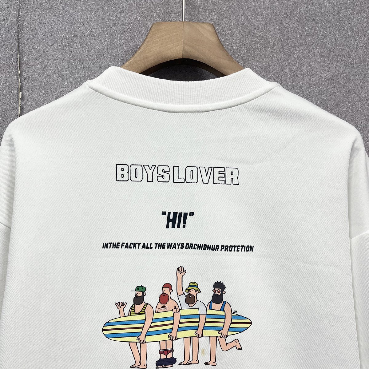 ベーシックで合わせやすいカラーなので様々な色のボトムスとも相性ばっちりです。胸に刺繍が配置し、キュートで特別感があります!バックには英字とサーフボードを持った男性4人がプリントされており、大人の遊び心満点、トレンド感をプラス趣向を凝らしたデザインはどんなシーンでも魅力を際立たせます。また、袖口も裾もリブが付いているので、きつくなくてちょうどいい感じです。