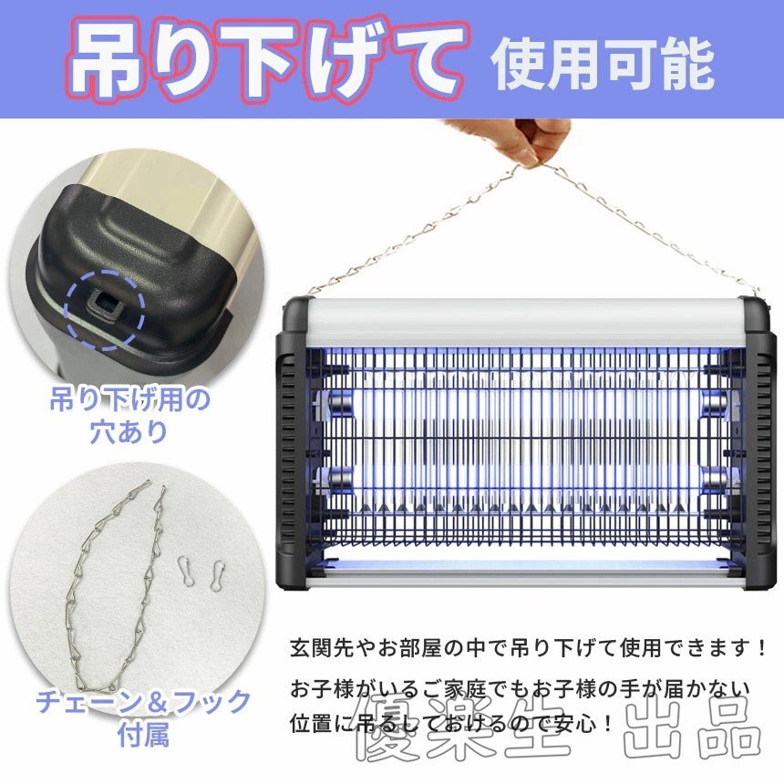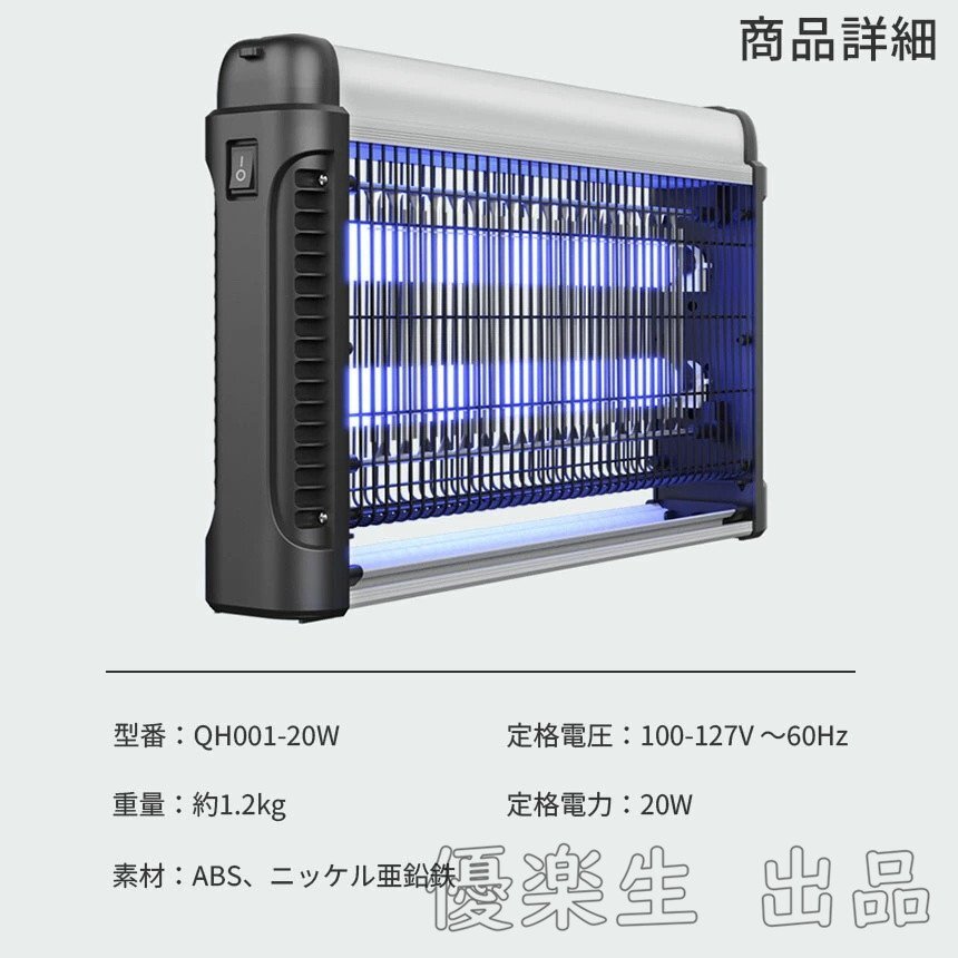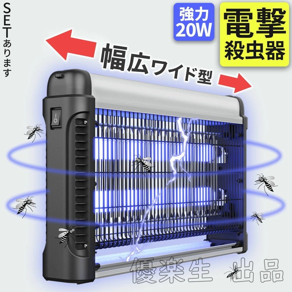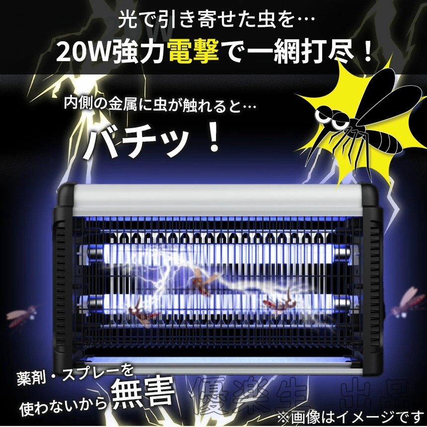 20W 電撃殺虫器 虫捕り器 蚊取り器 コンセント式 虫よけ 蚊 コバエ ハエ 電気 UV光源誘引式虫捕り器 薬剤不要 殺虫 ライト 虫対策 駆除