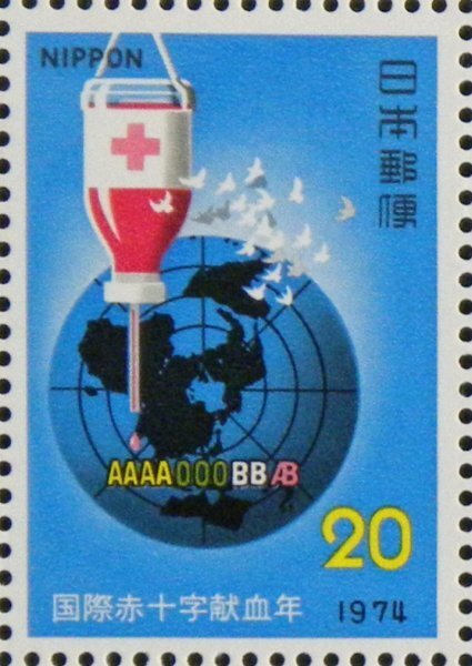 〓◆〓 '74年【特典あり】国際赤十字献血年「採血ピンと地球」20円切手1枚 〓◆〓