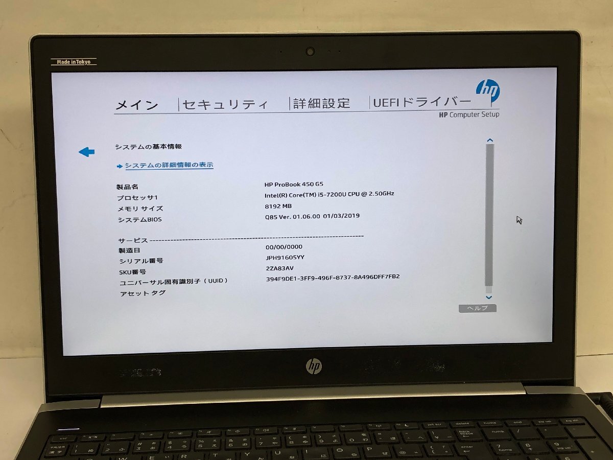 ジャンク/ HP HP ProBook 450 G5 Intel Core i5-7200U メモリ8.19GB ストレージ無し 【K23960】