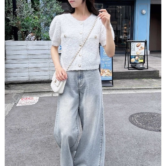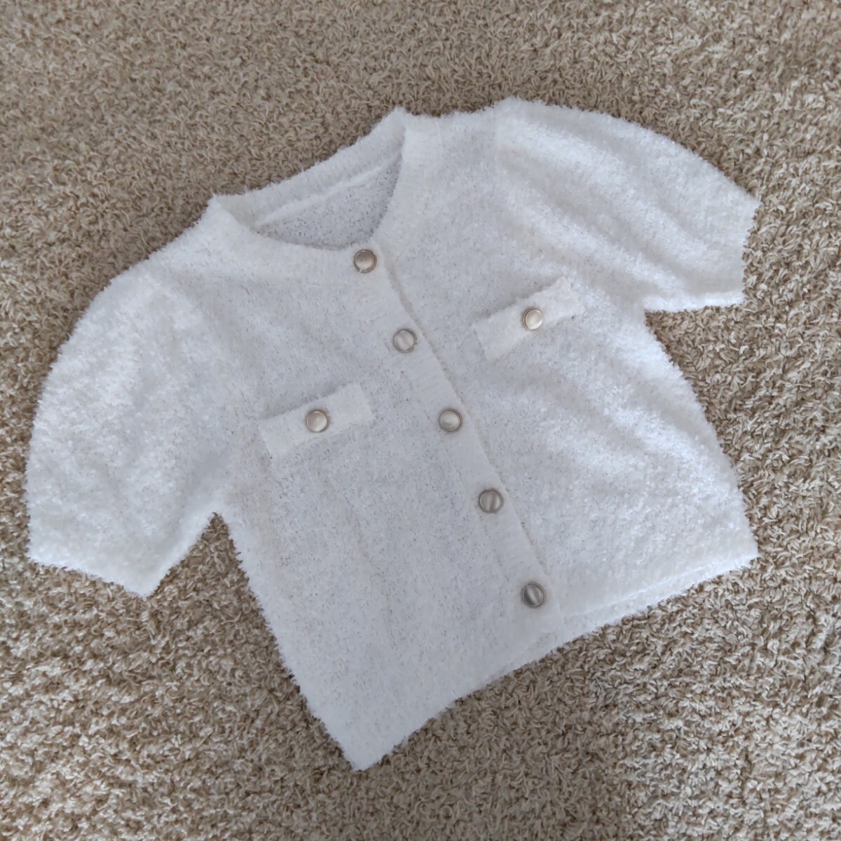 未使用 少し訳ありでお安く INGNI ファンシーヤーン 半袖ニットカーディガン 白 パーティーにも!