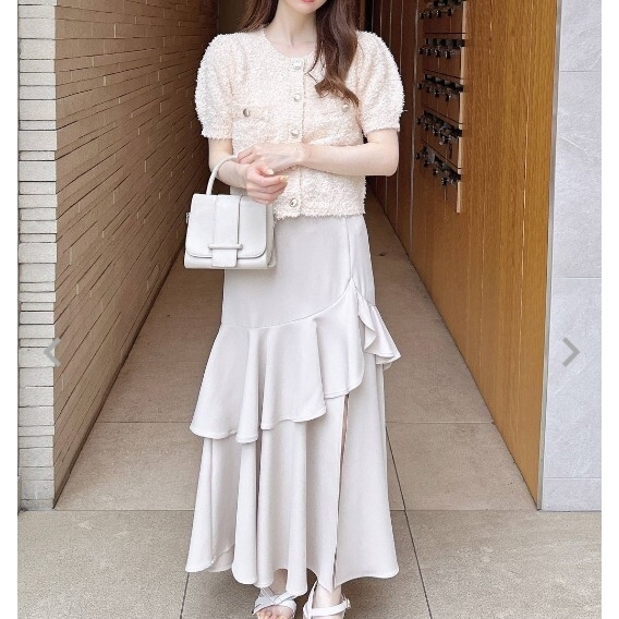 ボタンを開けて羽織ってもサマになる大人キュートなアイテムです。