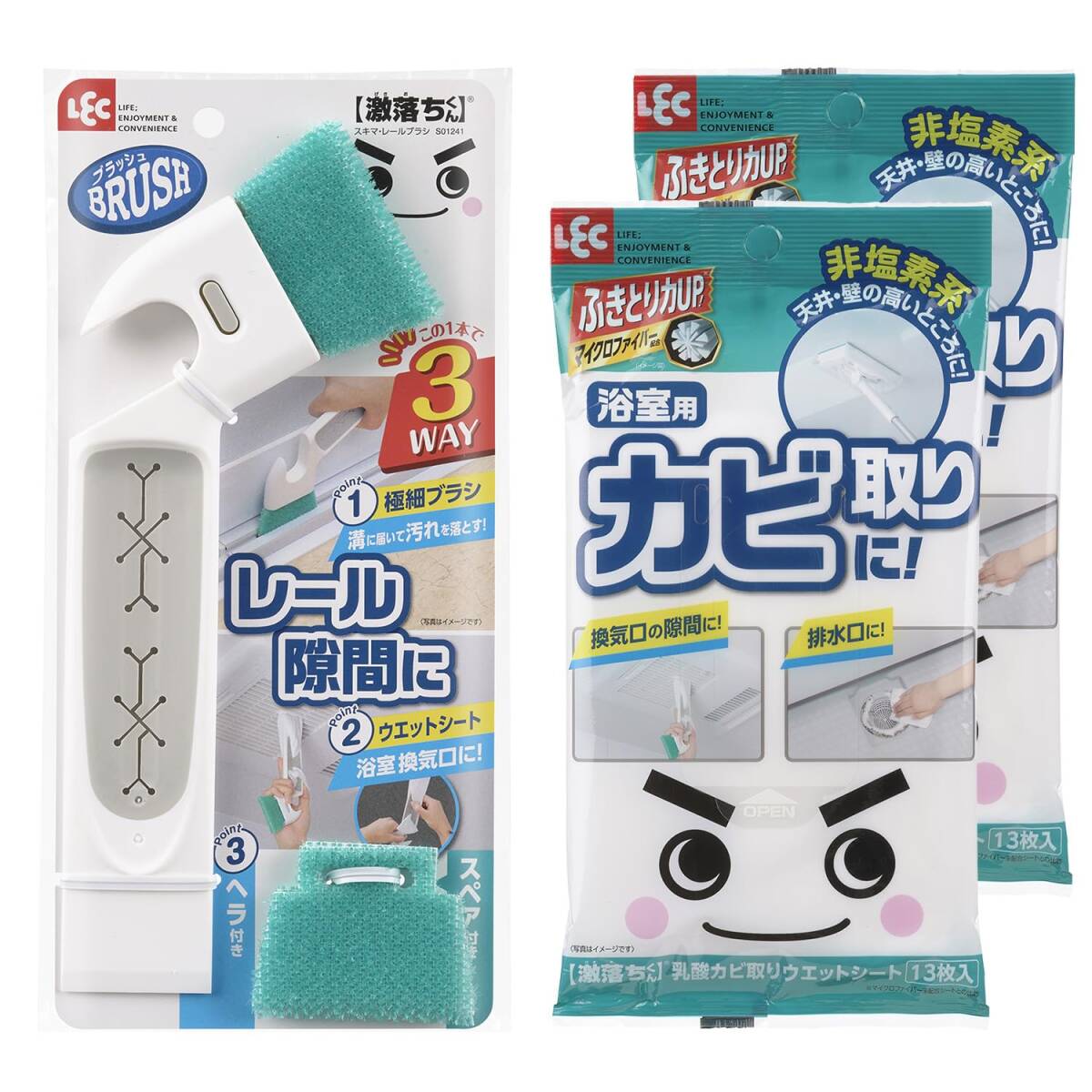レック 激落ちくん すき間 ・ レール ブラシ (スペア付) & 浴室用 カビ取り シート 2パック セット