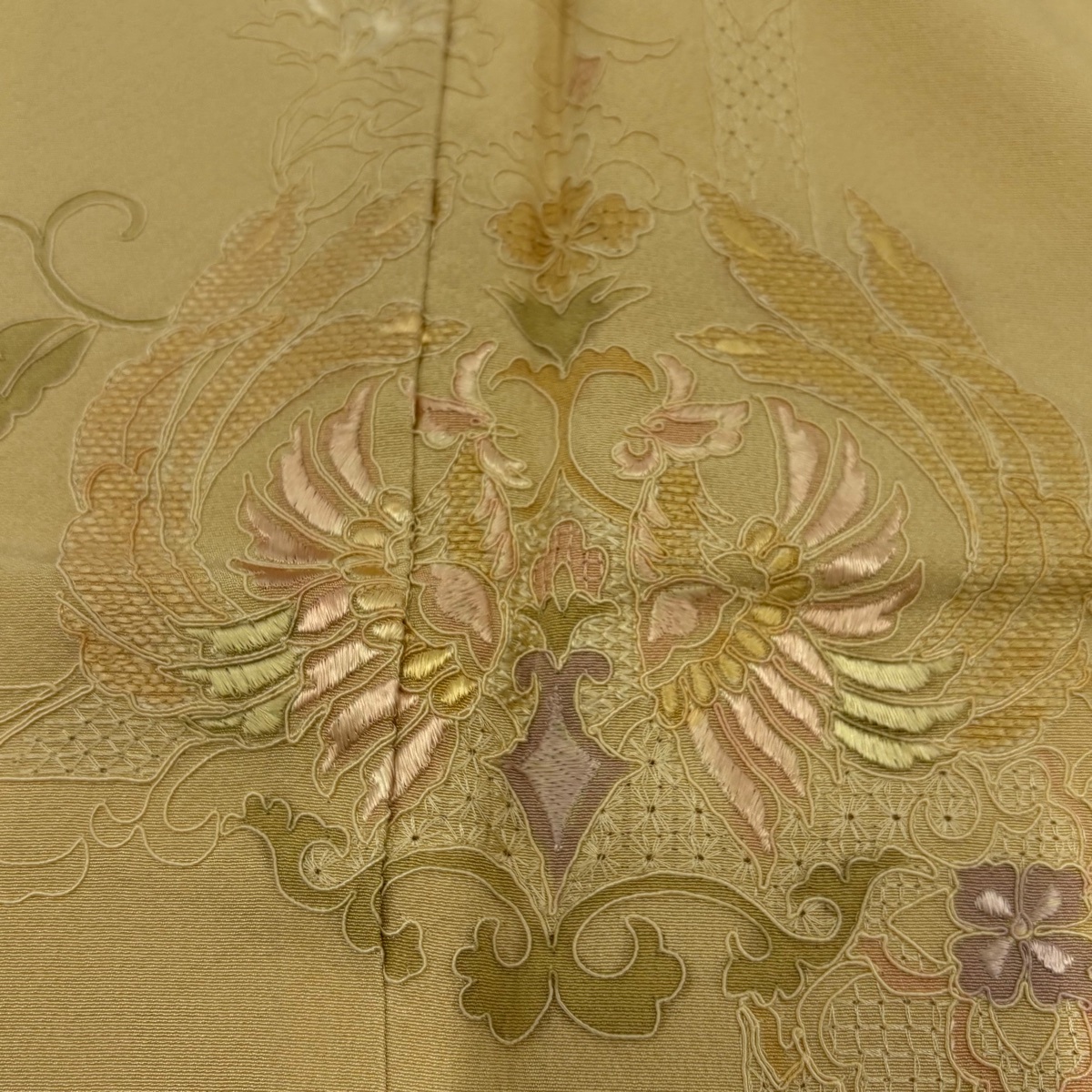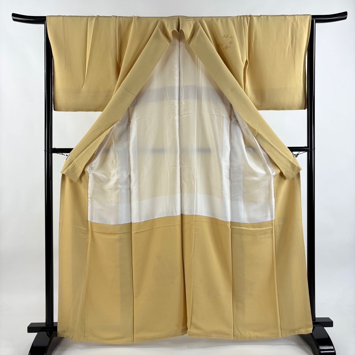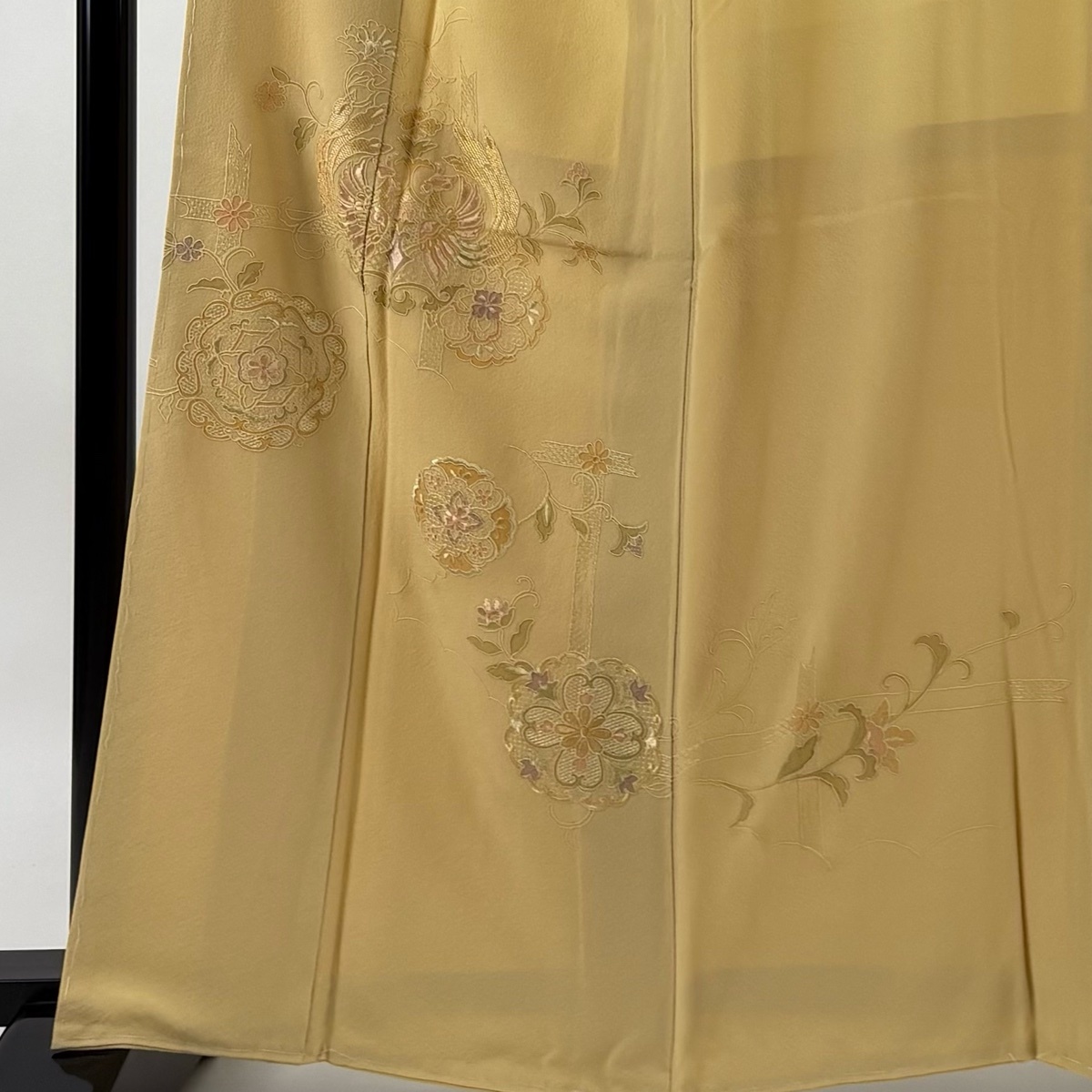 | 付下げ 美品 秀品 ますいわ屋 向かい鳥 華文 刺繍 黄色 袷 身丈162 裄丈65.5 M 正絹 【中古】 |