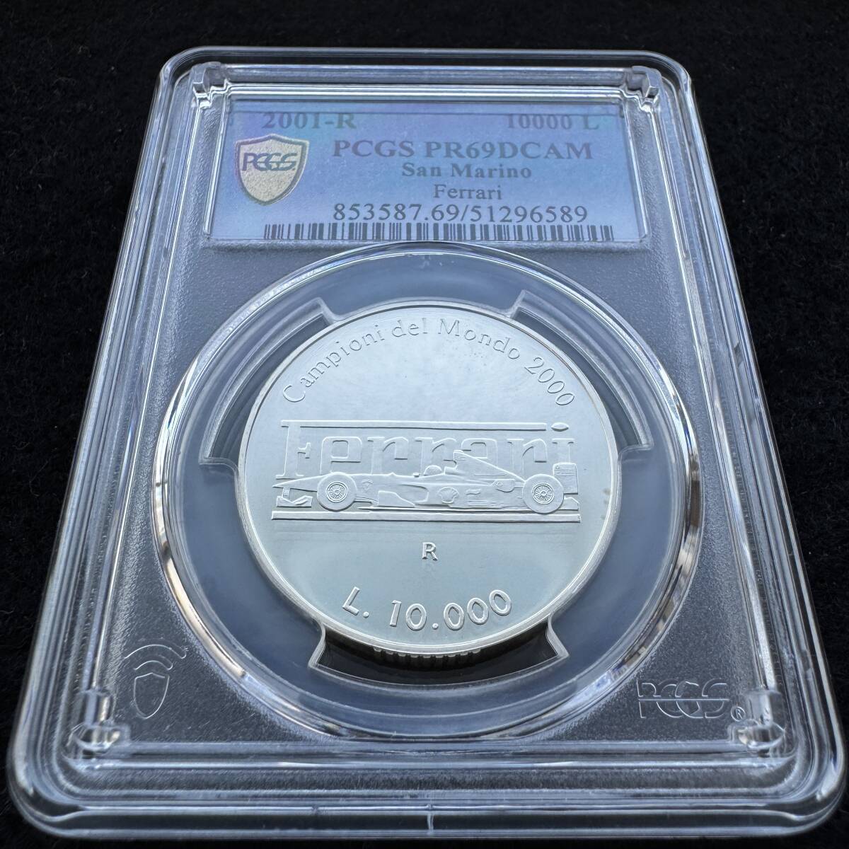 『フェラーリ 世界で1枚 最高鑑定』2001年 サンマリノ Ferrari F1 世界選手権優勝記念 10000リラ 銀貨 PCGS PR69 DEEP CAMEO TopPop San Marino