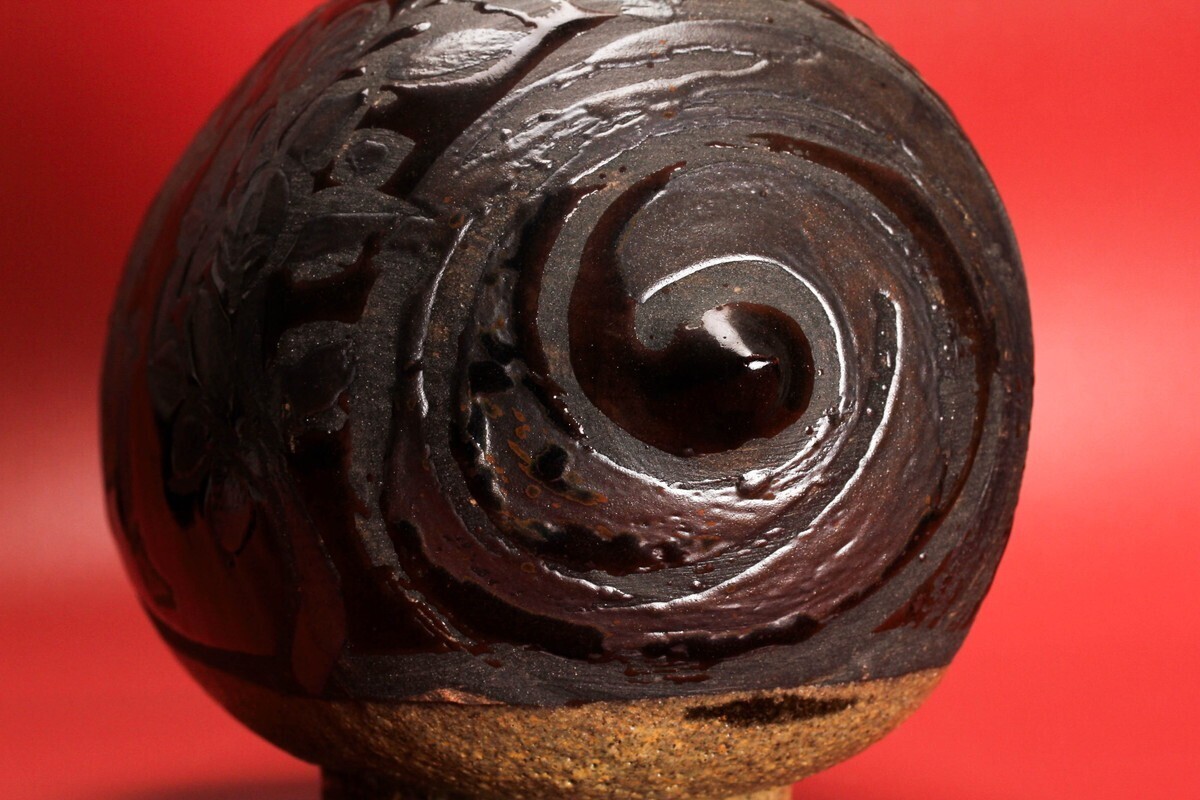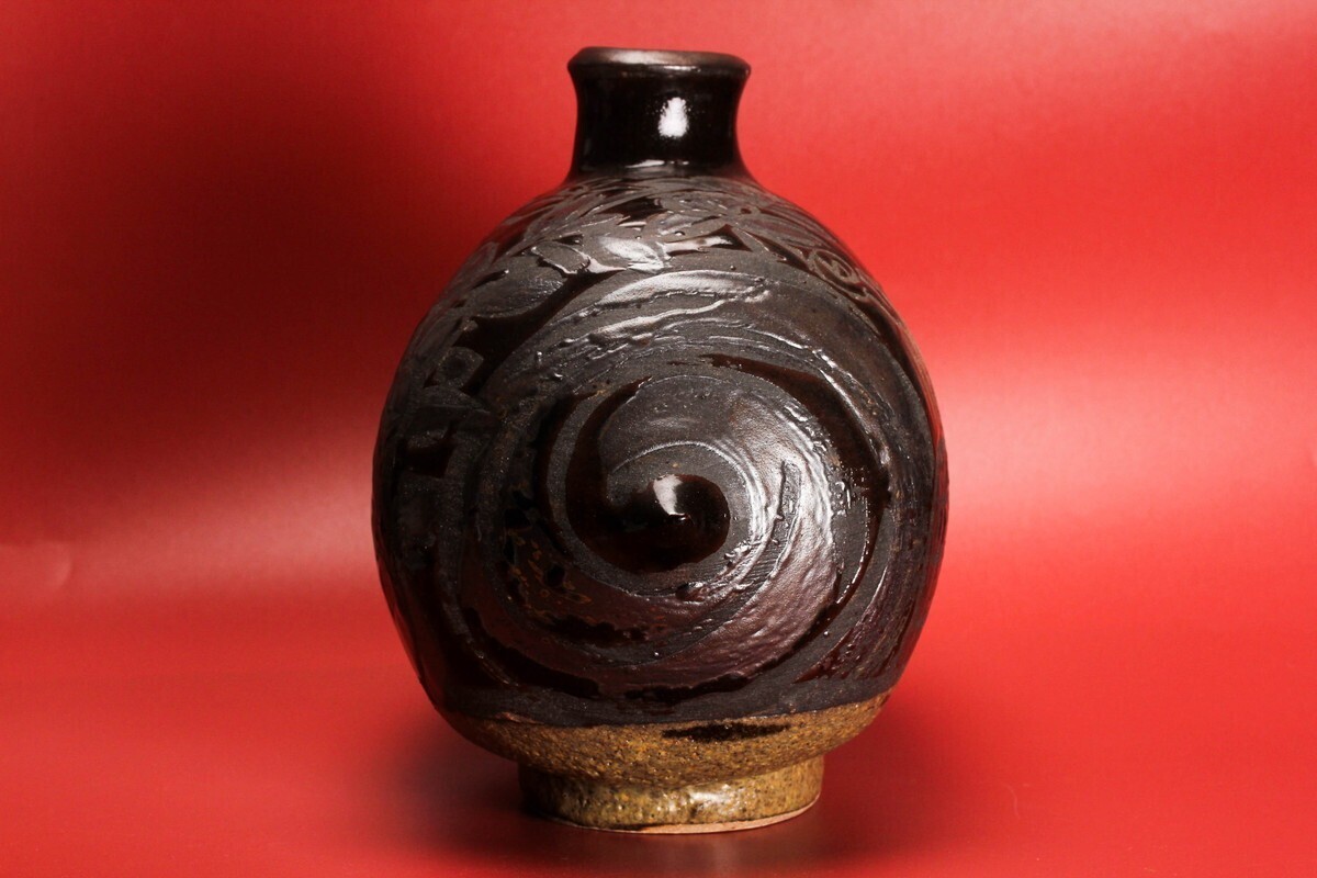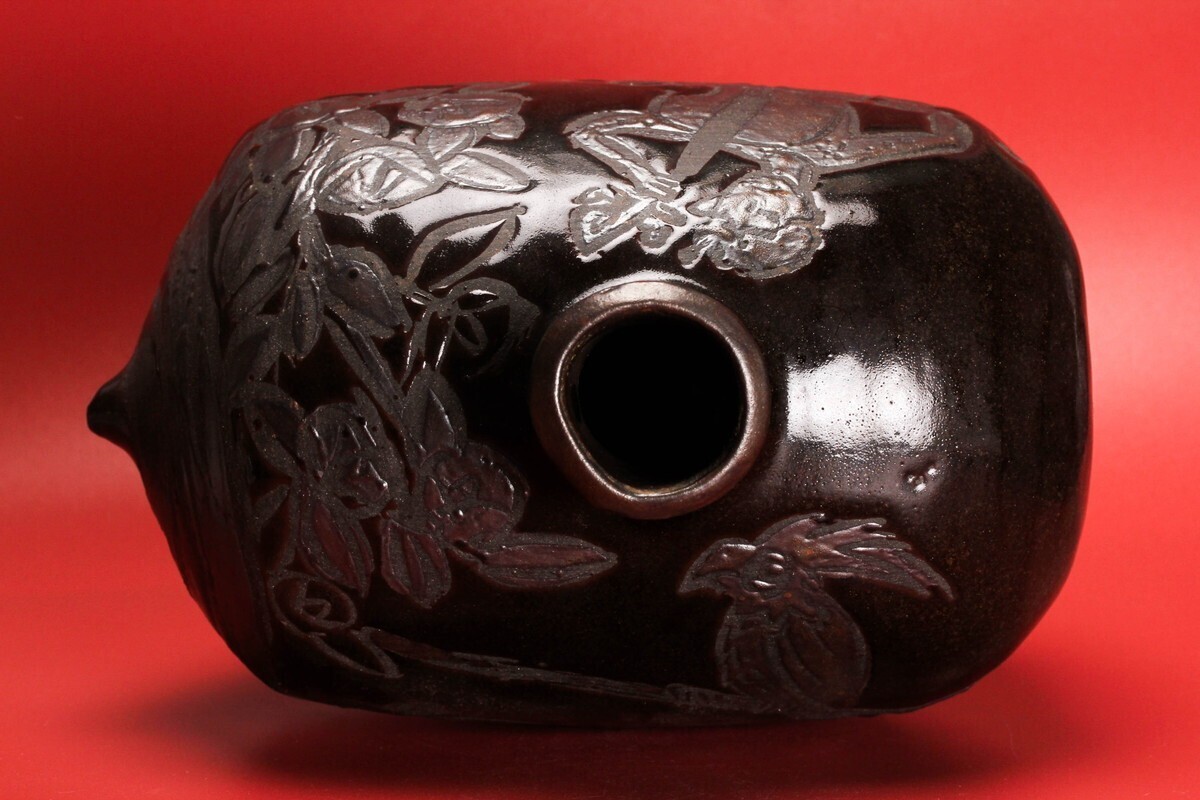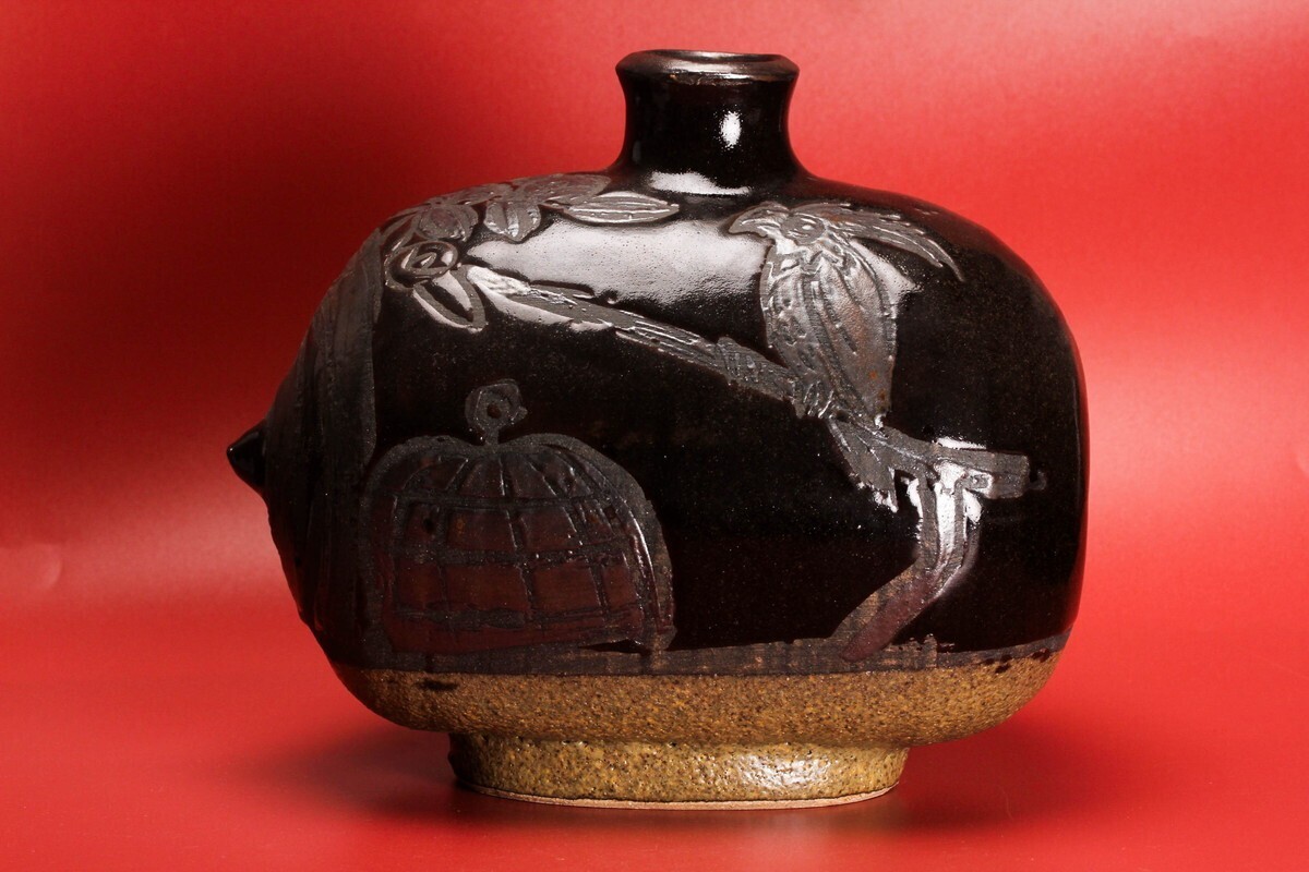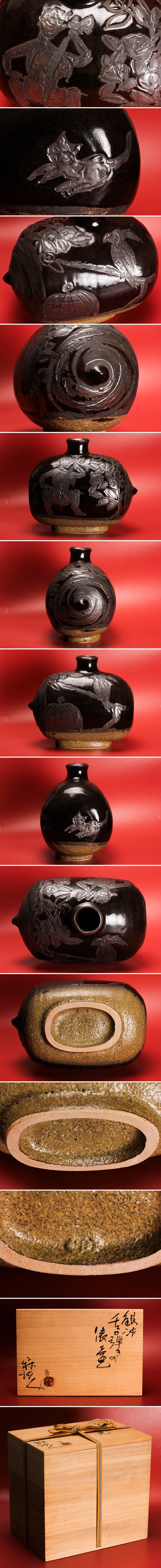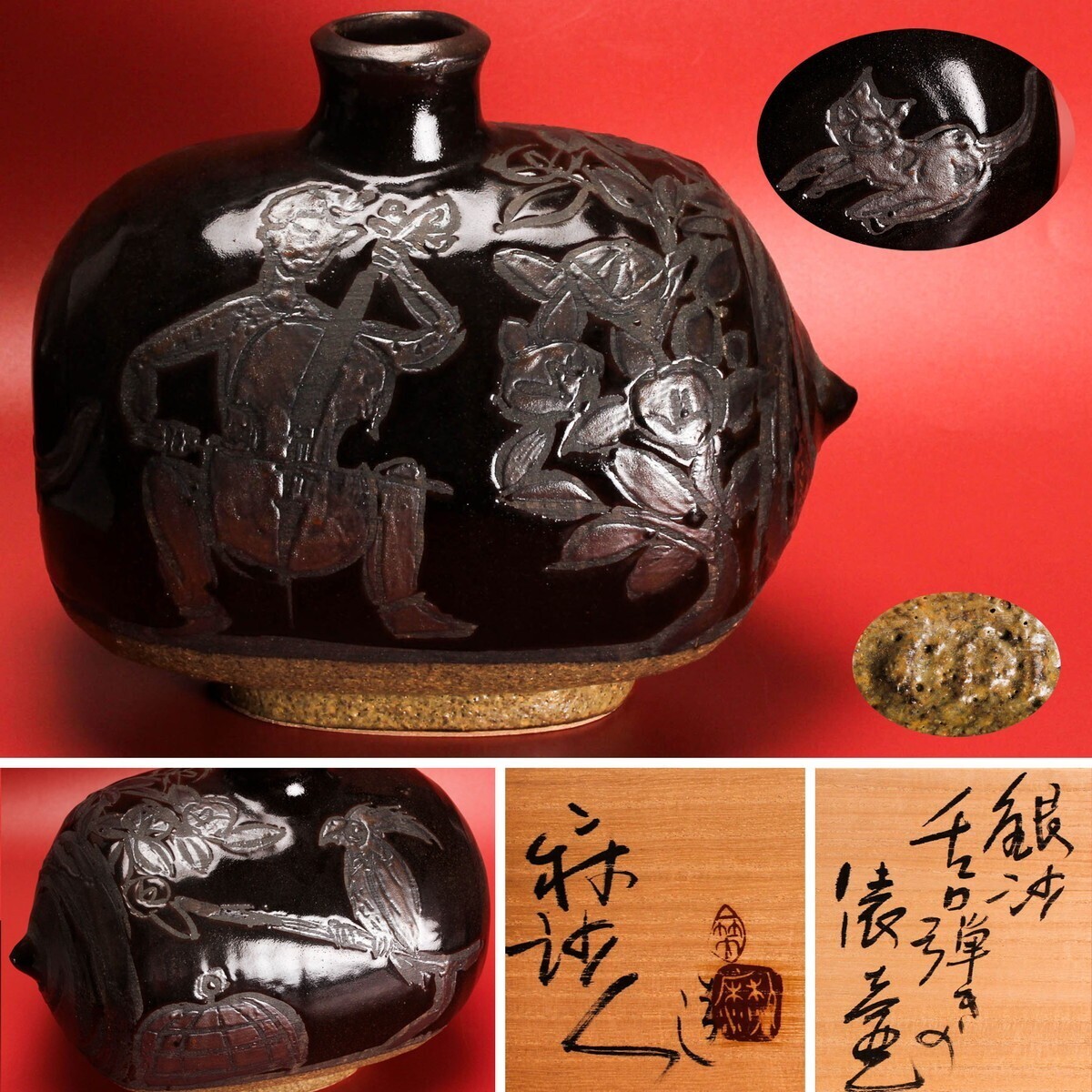 伊藤麻沙人 秀逸作 銀沙チェロ弾き文俵壷 共箱 本物保証