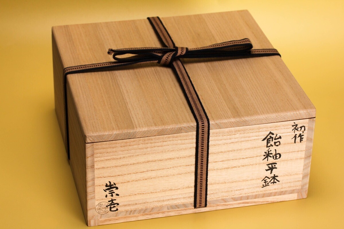 稀に他の作品名・作家名が書き付けられた木箱をお付けしております。誤認防止のため箱書き部分の画像を掲載しない場合もございます。