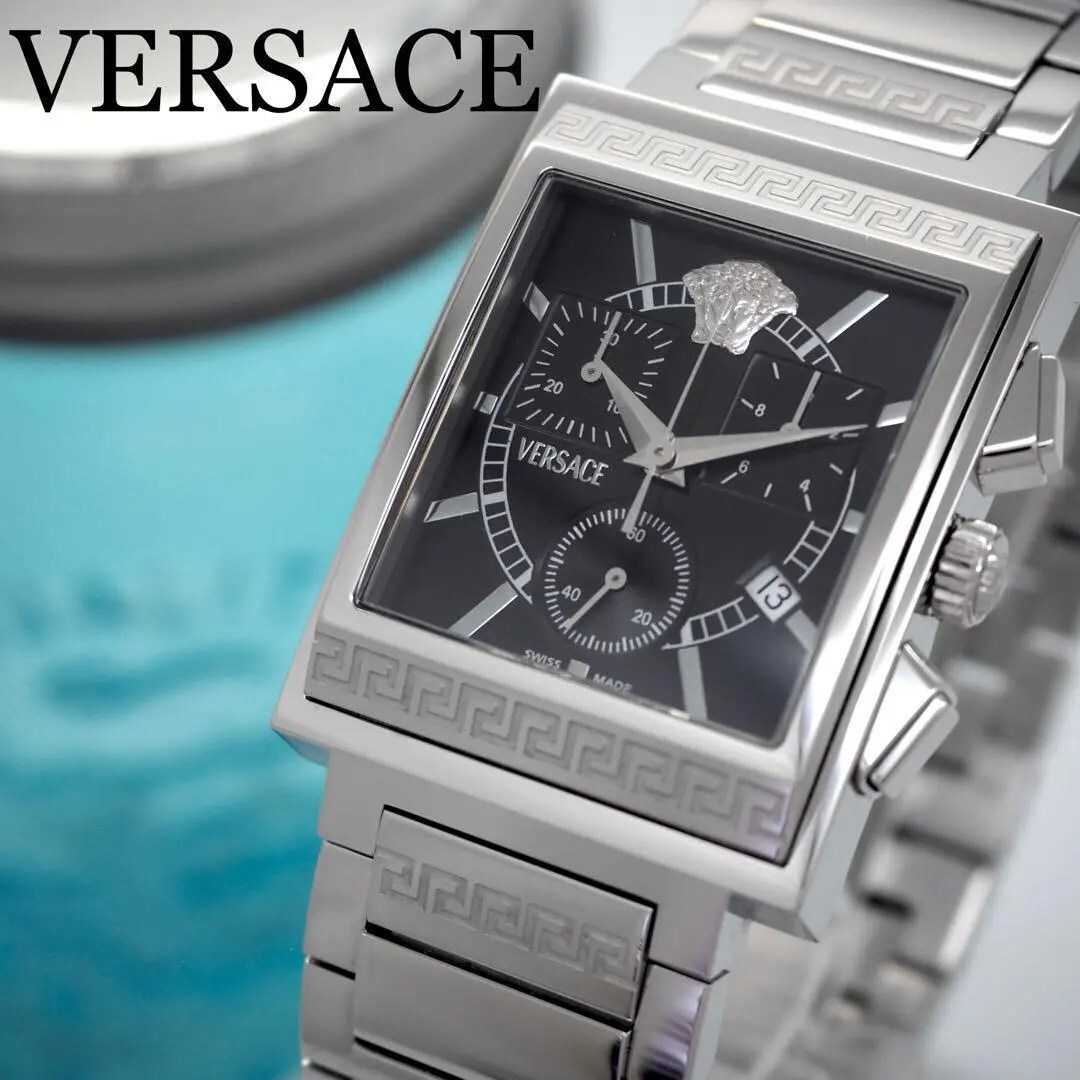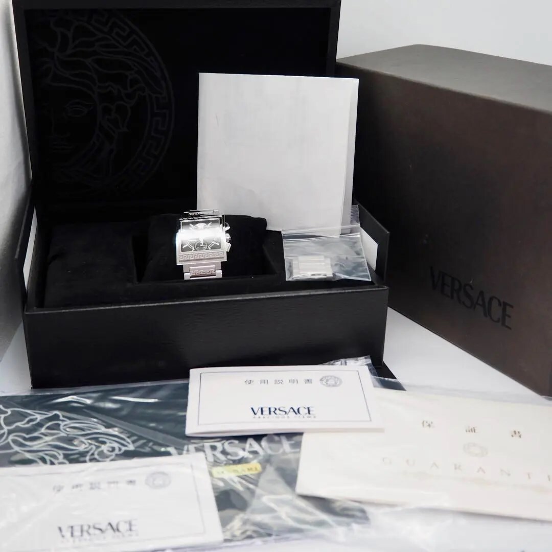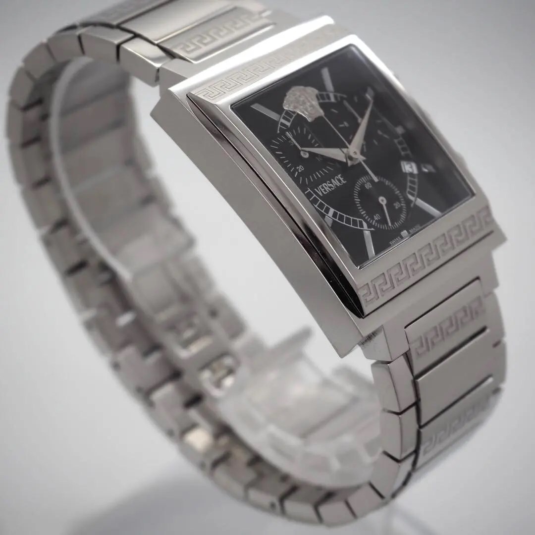 326【美品】VERSACE スクエア クロノグラフ 希少 メンズ 時計 箱付き