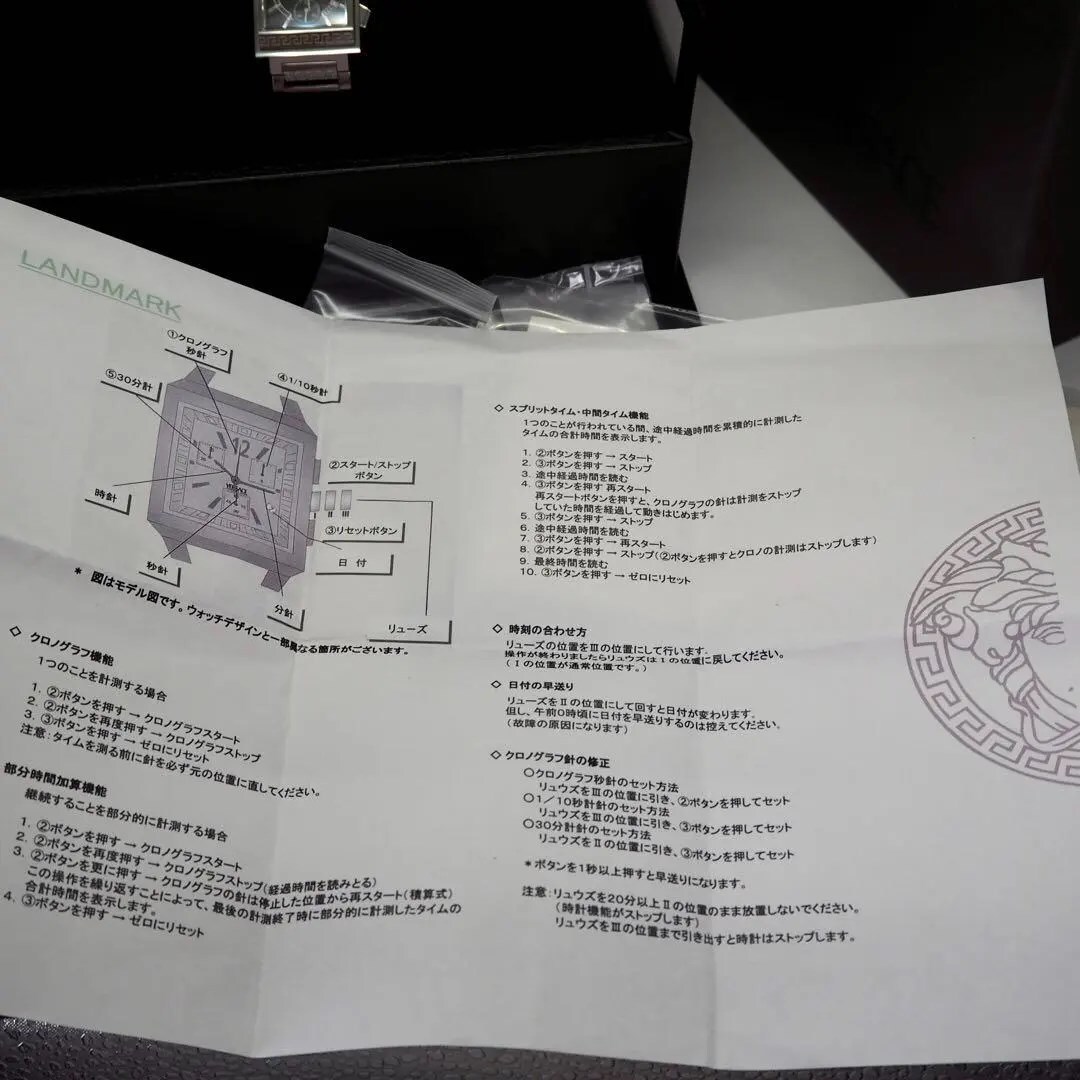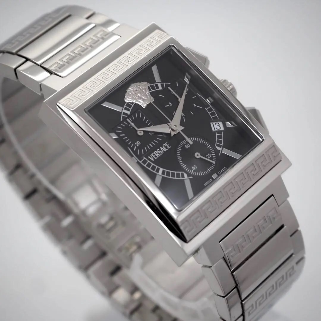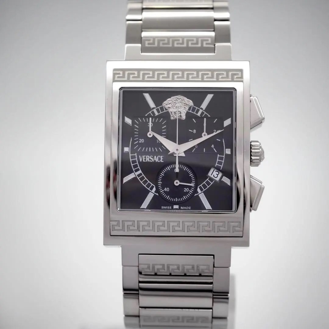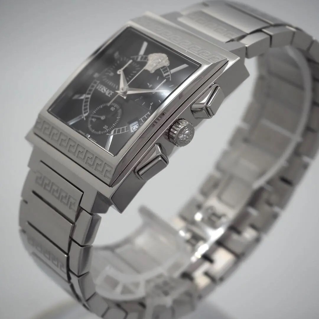 326【美品】VERSACE スクエア クロノグラフ 希少 メンズ 時計 箱付き