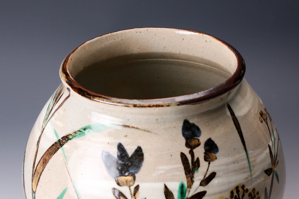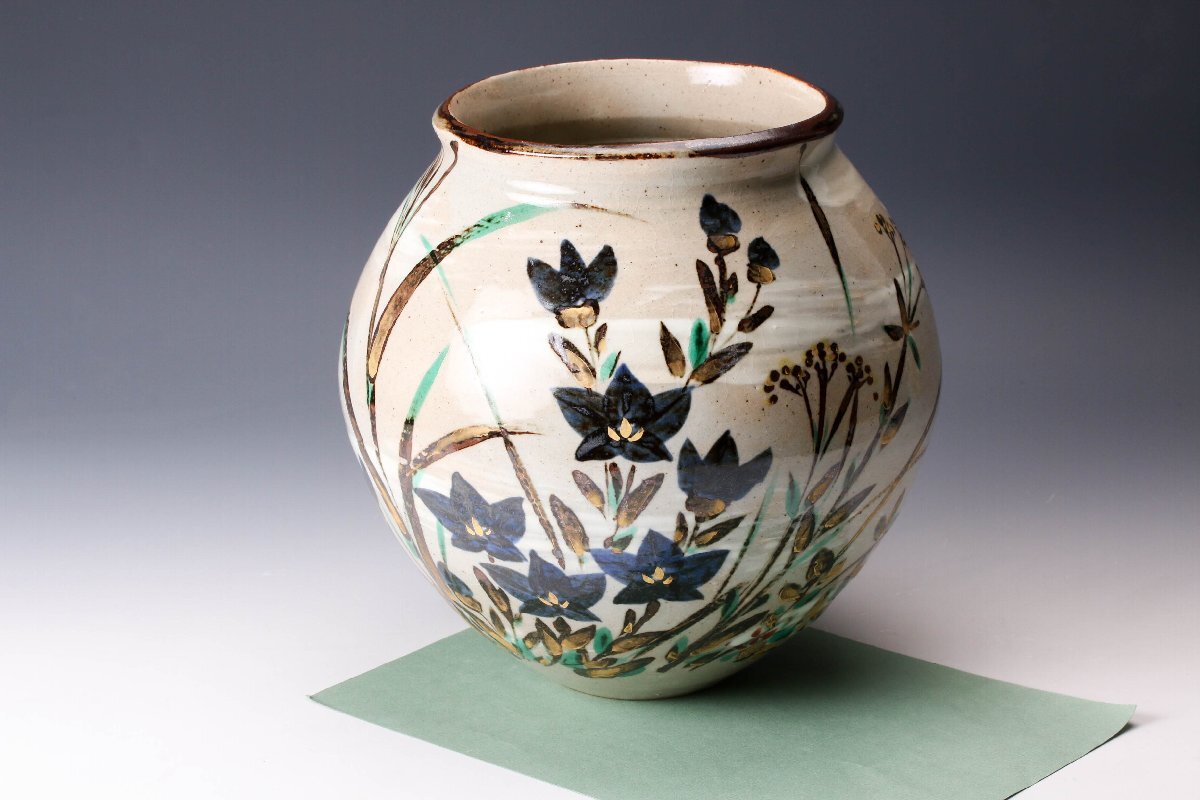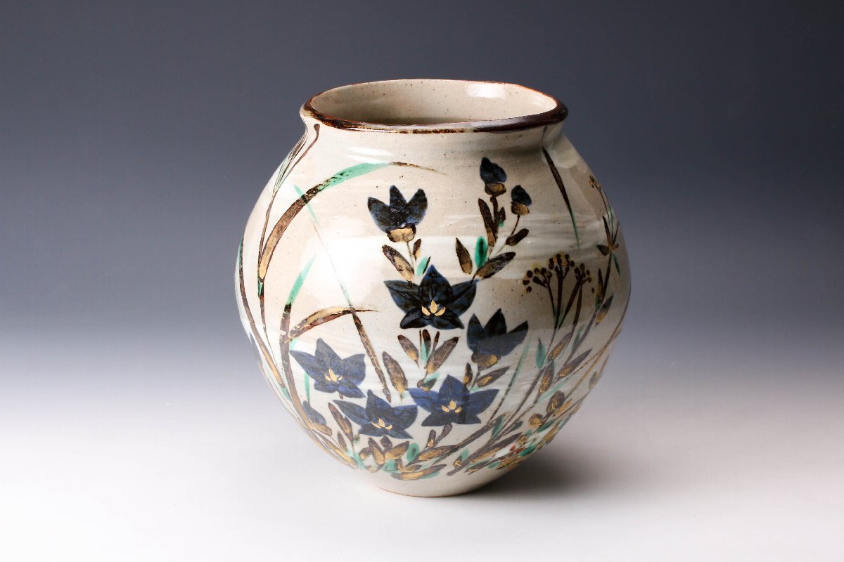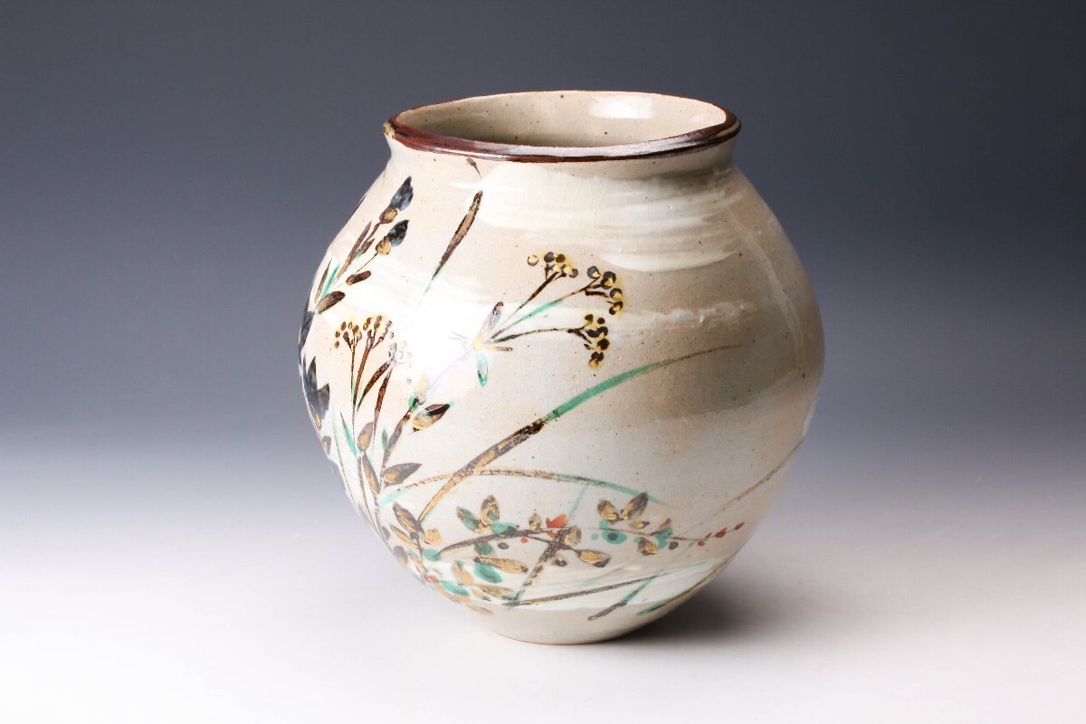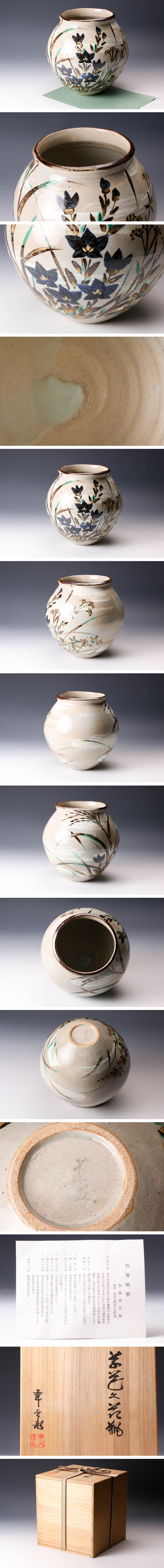 【佳香】加藤幸兵衛 幸兵衛窯 草花文花瓶 共箱 栞 本物保証