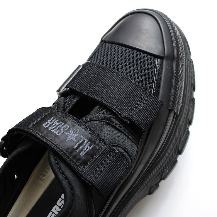 | リサイクルマテリアルを随所に使用しつつ、履き心地とクラシックな外観を洗練させたオールスターの次世代モデル、 ALL STAR (R)のソール、パターンアレンジモデル。 オールスターのアイコニックなデザインに、トレッキングシューズを思わせるボリューム感あふれるアウトソールを融合したトレックウェーブから、スニーカーサンダルのデザインが登場。 春夏シーズンにぴったりなメッシュやネオプレーン素材を取り入れ、大胆なカットアウトパターンが足元に軽やかな印象をプラス。 足の甲と踵に配したベルトによりフィッティングが調整可能、クッション性に優れたE.V.A.ミッドソール、 防滑デザインのアウトソールにより快適な履き心地を実現しています。 カラーは、ソールとアッパーのコントラストがカジュアルな印象のブラックと、 ブラックで統一されたカラーリングが洗練された印象のブラックモノクロームの2カラー展開。 カジュアルな普段使いからオフィスカジュアルまで、日々のあらゆるシーンで活躍してくれる一足です。 ヒール高さ:約5.5cm(参考サイズ26.5cm) ・サイズによって異なる場合がございます。 ・個体差が生じる場合がございます。 | |