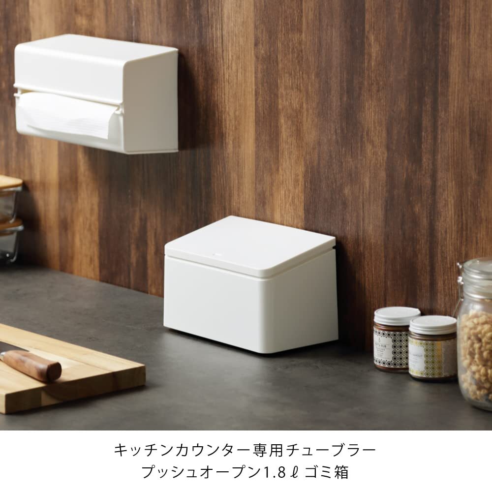 キッチンカウンターで使うチューブラー、プッシュオープン1.8Lゴミ箱。 アイランドキッチンなど見せるキッチンが増える中、ゴミ箱もスタイリッシュに。